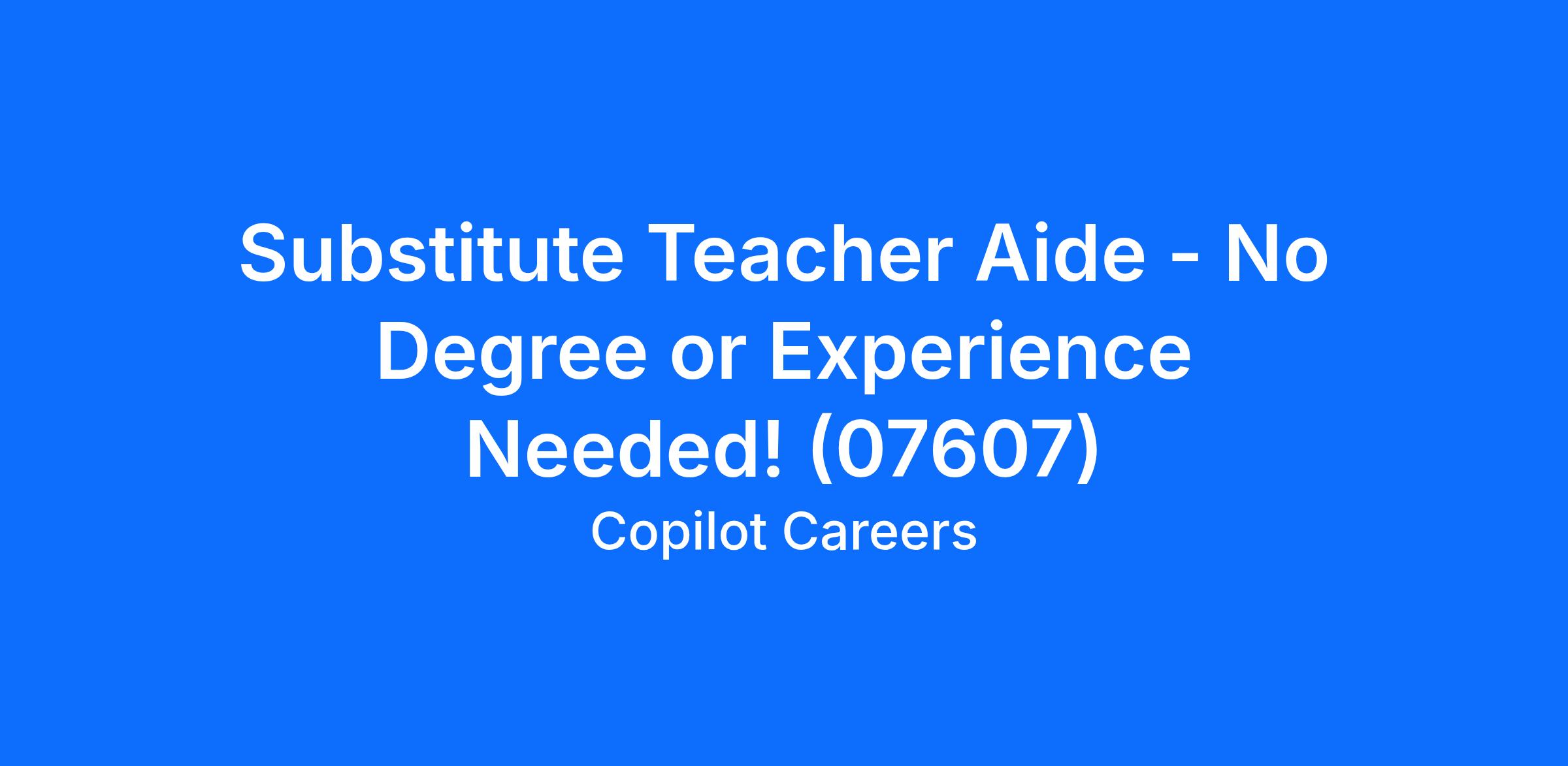Substitute Teacher Aide - No Degree or Experience Needed! (07607)
