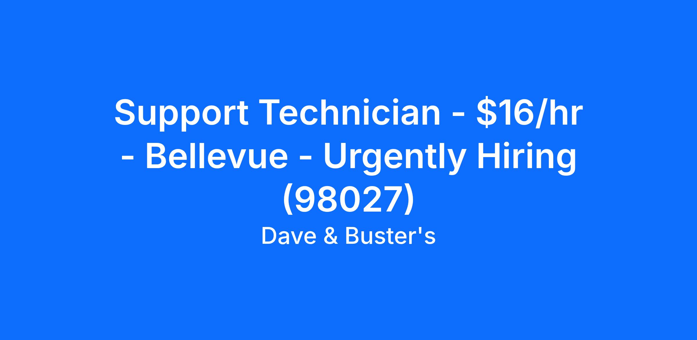 Support Technician - $16/hr - Bellevue - Urgently Hiring (98027)