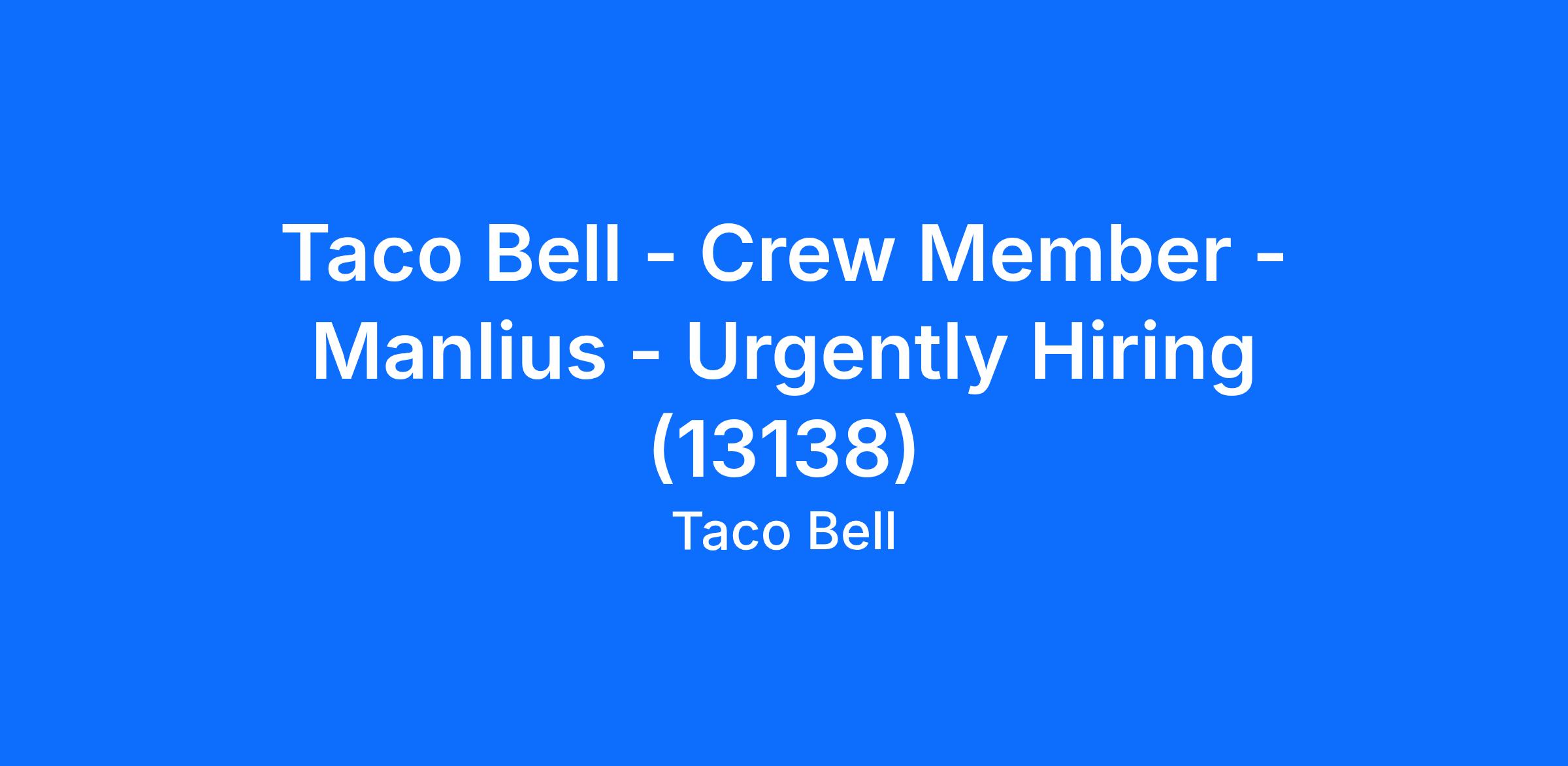 Taco Bell - Crew Member - Manlius - Urgently Hiring (13138)