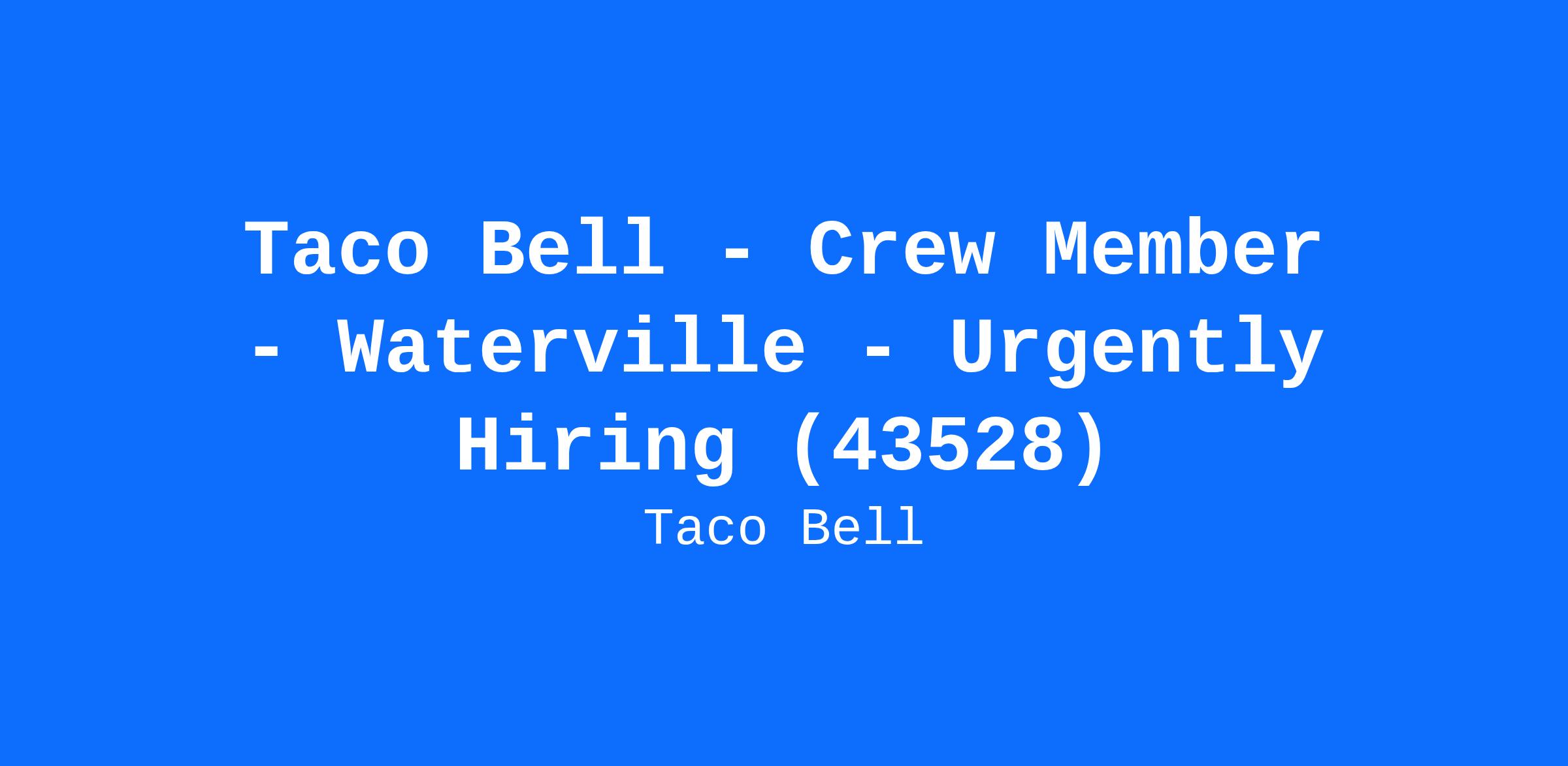 Taco Bell - Crew Member - Waterville - Urgently Hiring (43528)