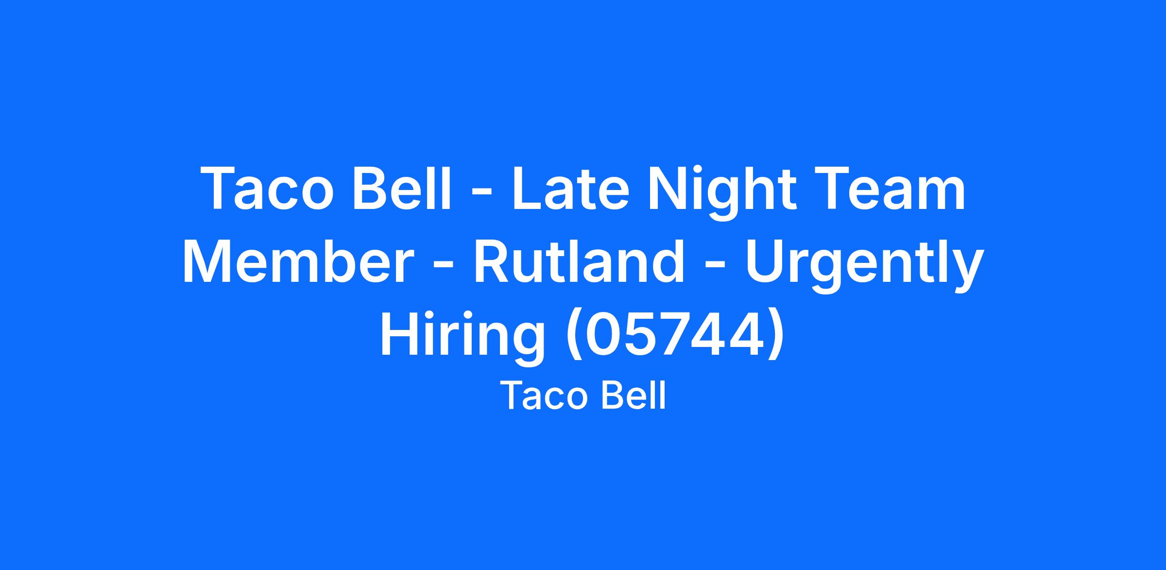 Taco Bell - Late Night Team Member - Rutland - Urgently Hiring (05744)