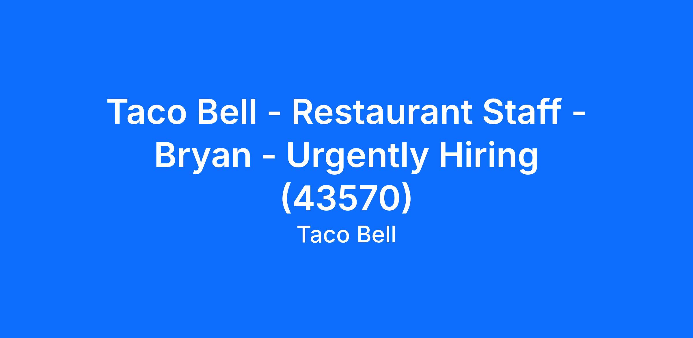 Taco Bell - Restaurant Staff - Bryan - Urgently Hiring (43570)