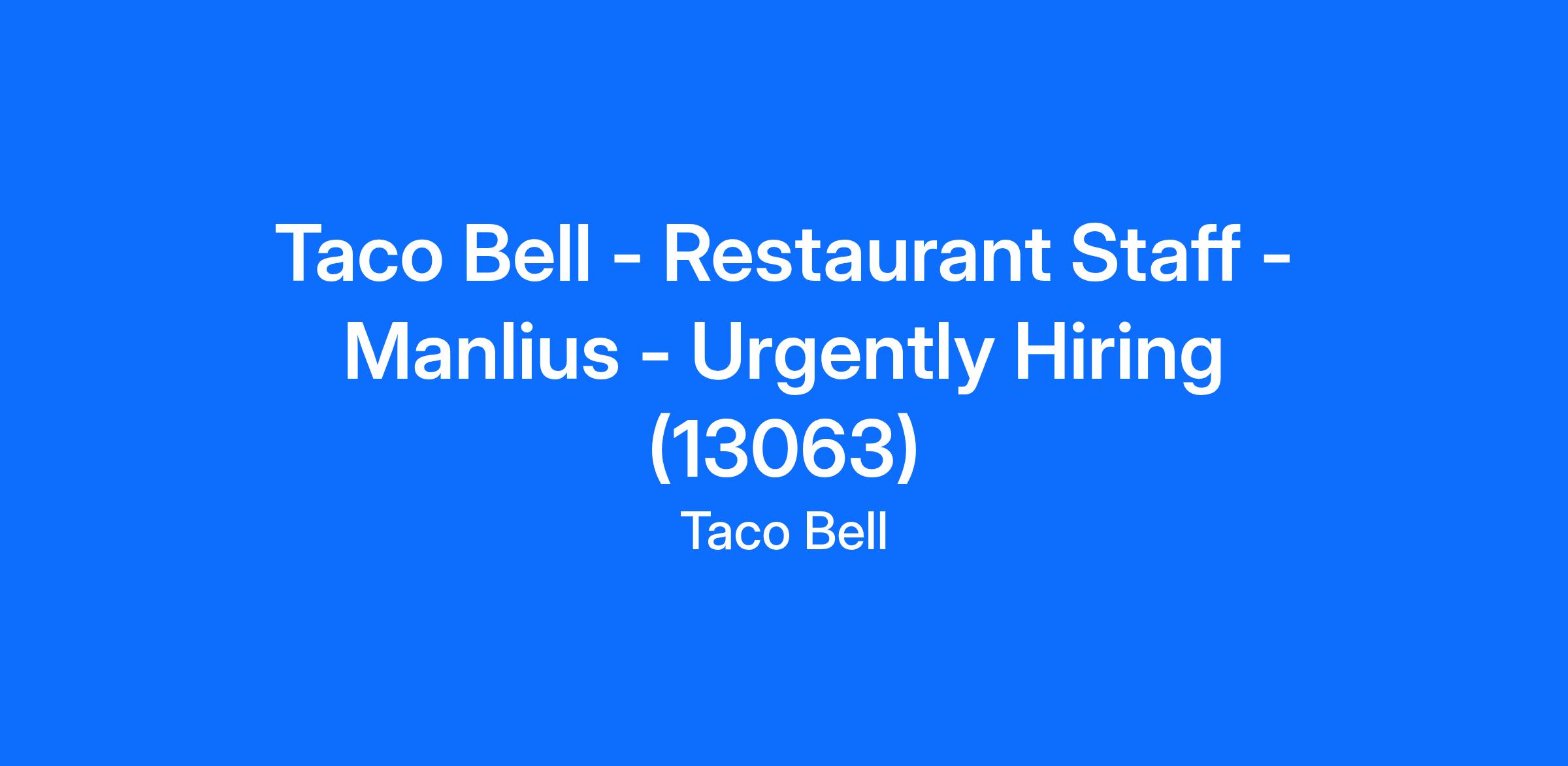 Taco Bell - Restaurant Staff - Manlius - Urgently Hiring (13063)