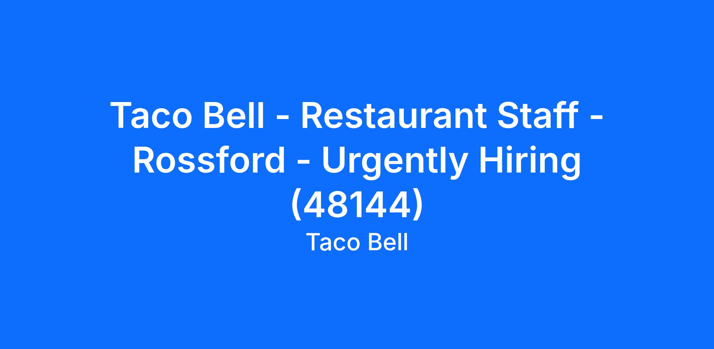 Taco Bell - Restaurant Staff - Rossford - Urgently Hiring (48144)