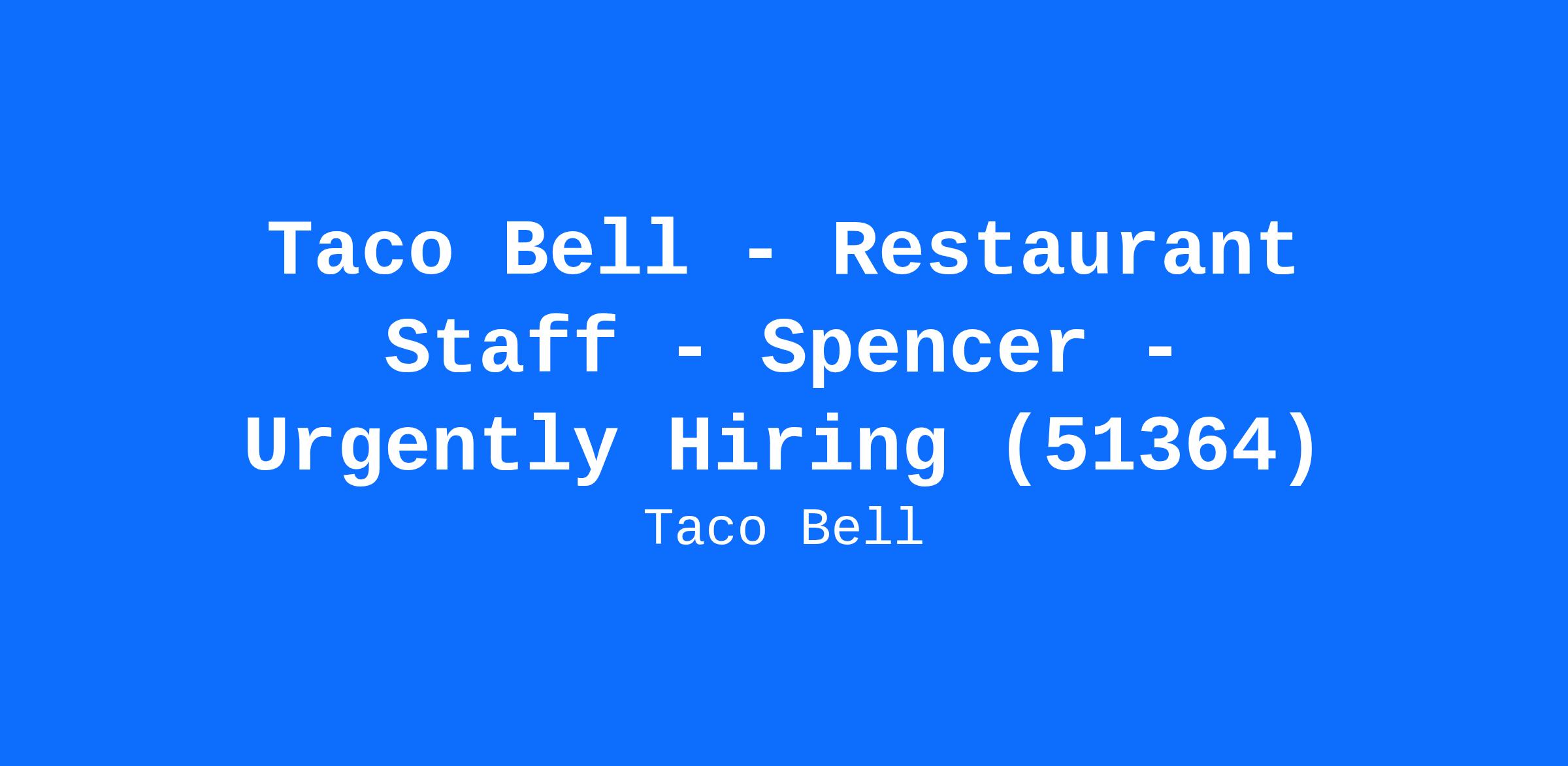 Taco Bell - Restaurant Staff - Spencer - Urgently Hiring (51364)