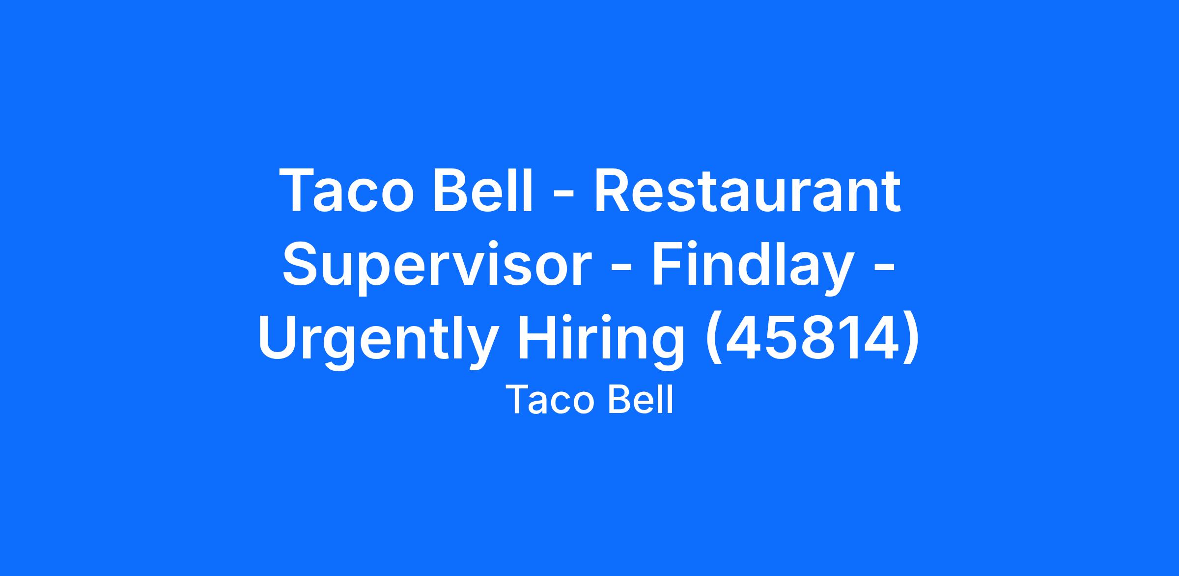 Taco Bell - Restaurant Supervisor - Findlay - Urgently Hiring (45814)