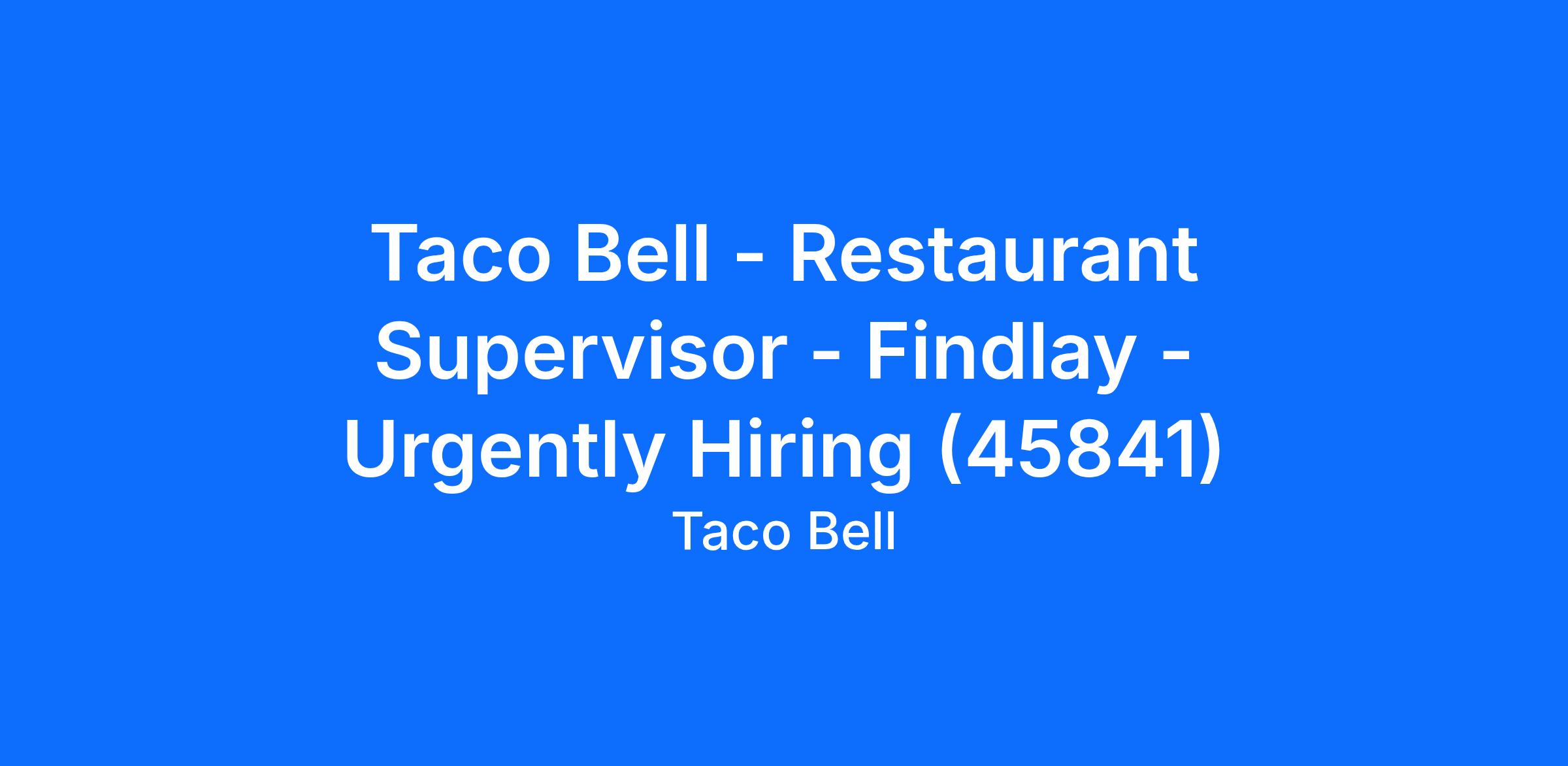Taco Bell - Restaurant Supervisor - Findlay - Urgently Hiring (45841)