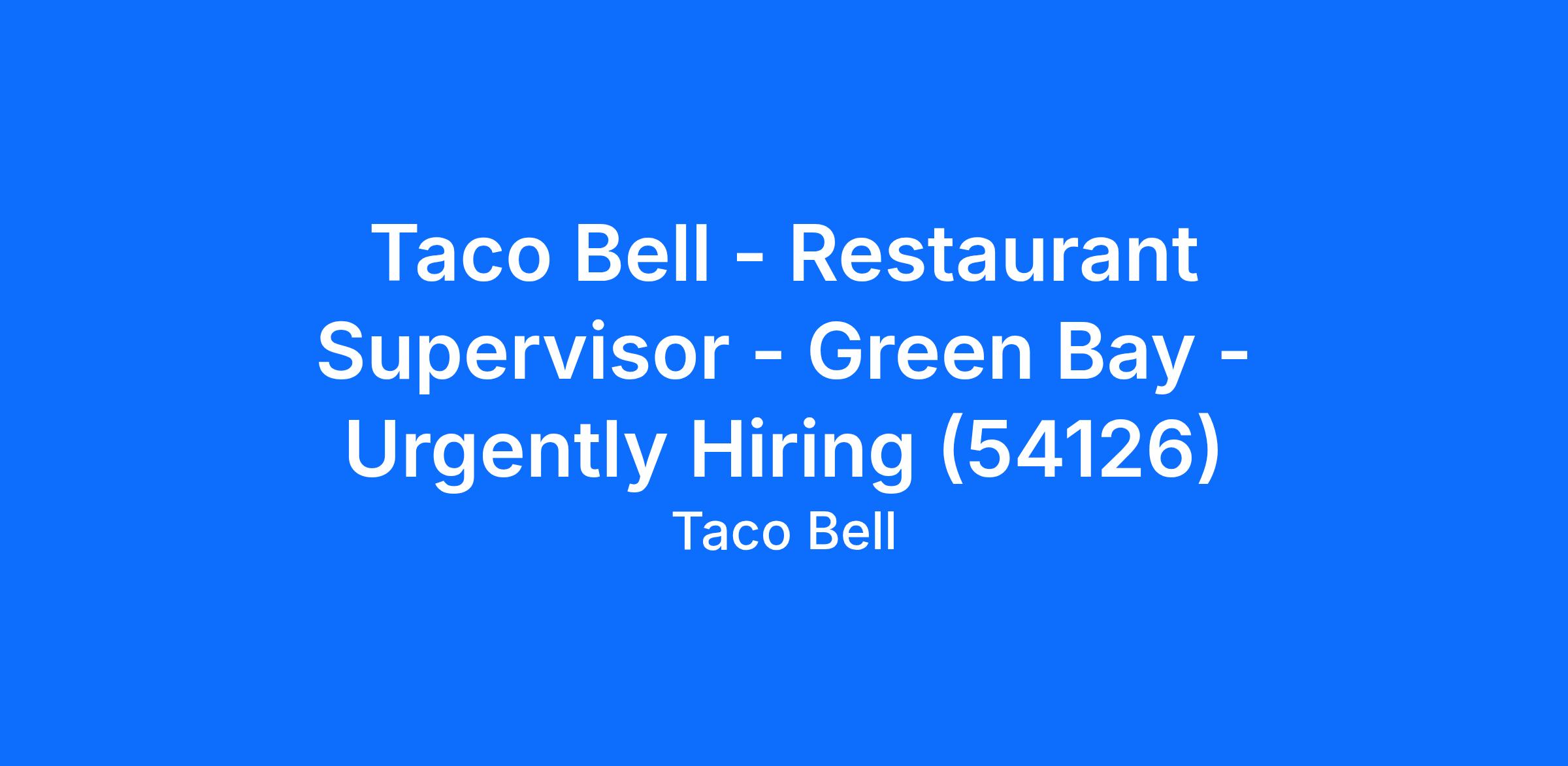 Taco Bell - Restaurant Supervisor - Green Bay - Urgently Hiring (54126)