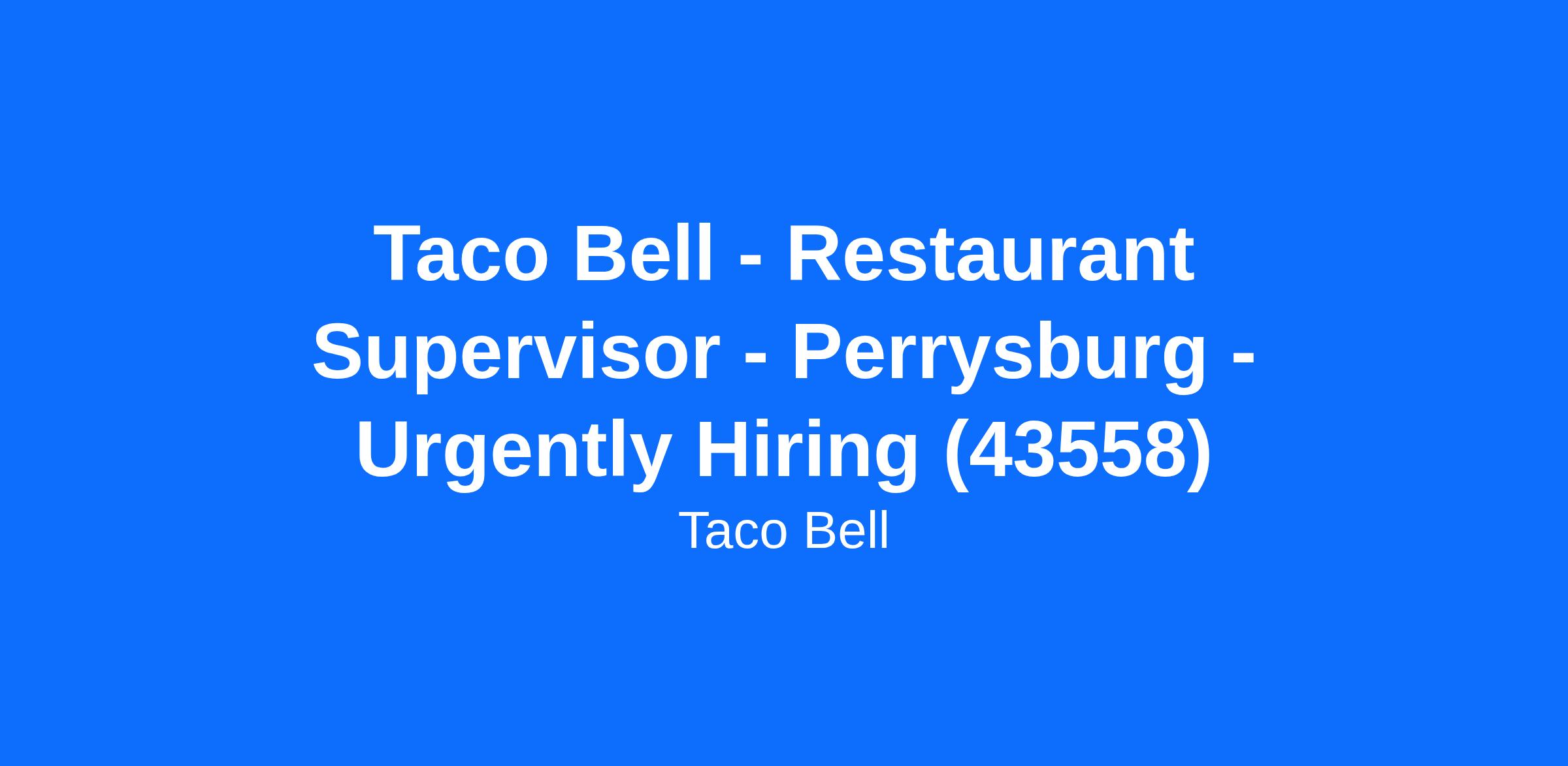Taco Bell - Restaurant Supervisor - Perrysburg - Urgently Hiring (43558)