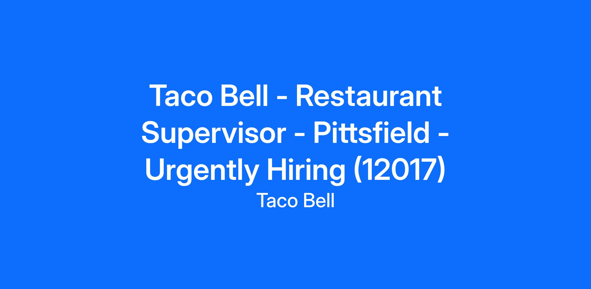 Taco Bell - Restaurant Supervisor - Pittsfield - Urgently Hiring (12017)