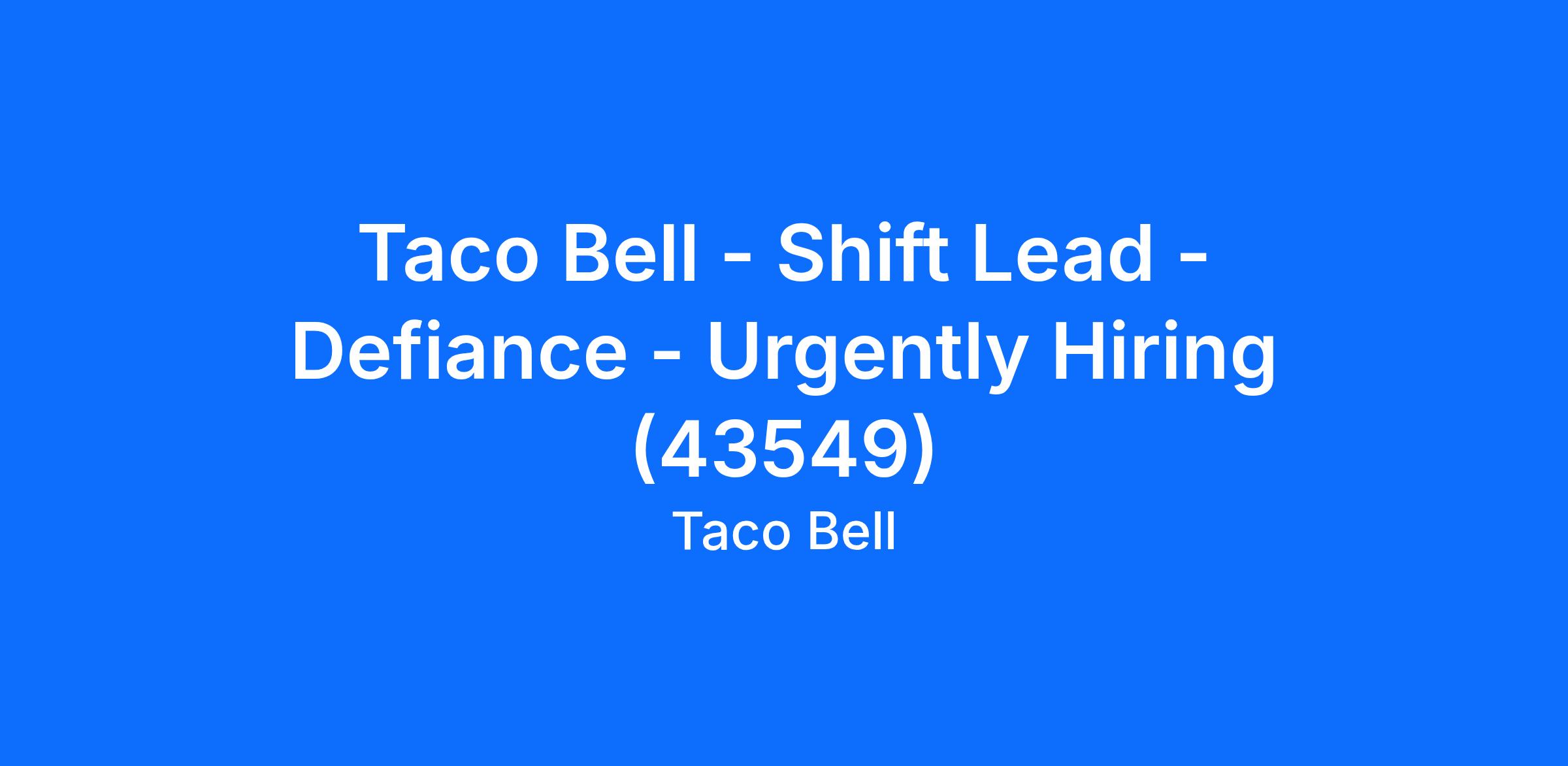 Taco Bell - Shift Lead - Defiance - Urgently Hiring (43549)