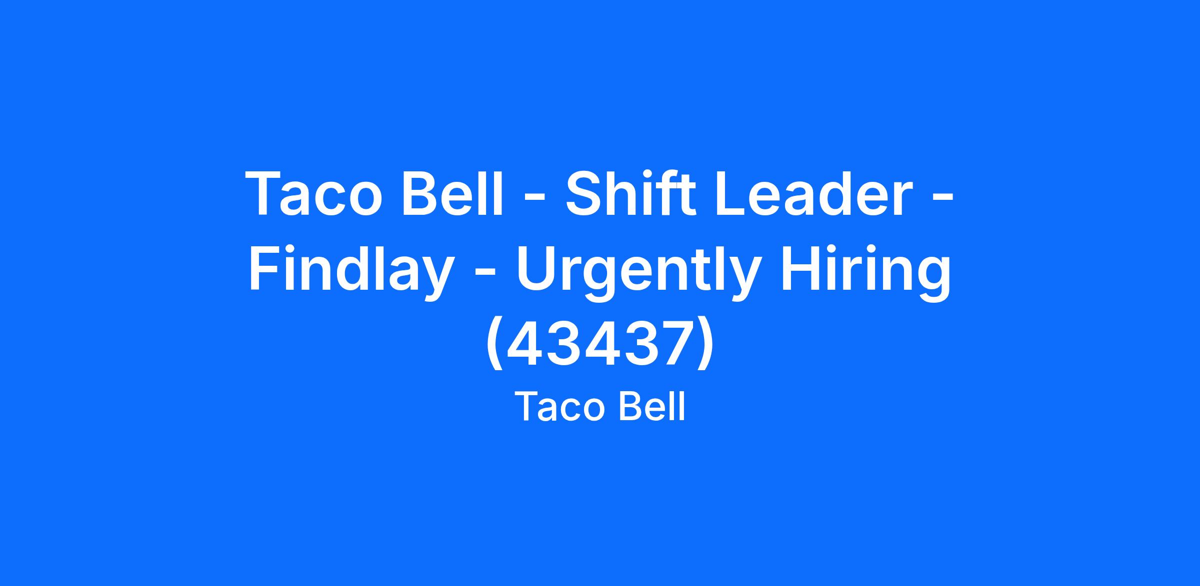 Taco Bell - Shift Leader - Findlay - Urgently Hiring (43437)