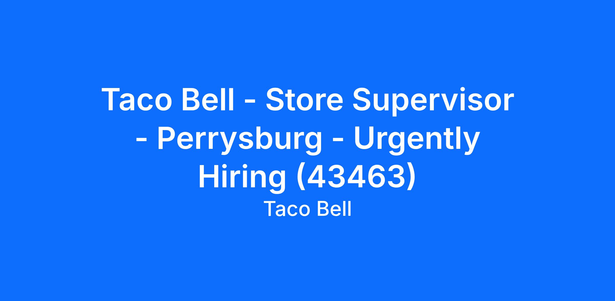Taco Bell - Store Supervisor - Perrysburg - Urgently Hiring (43463)