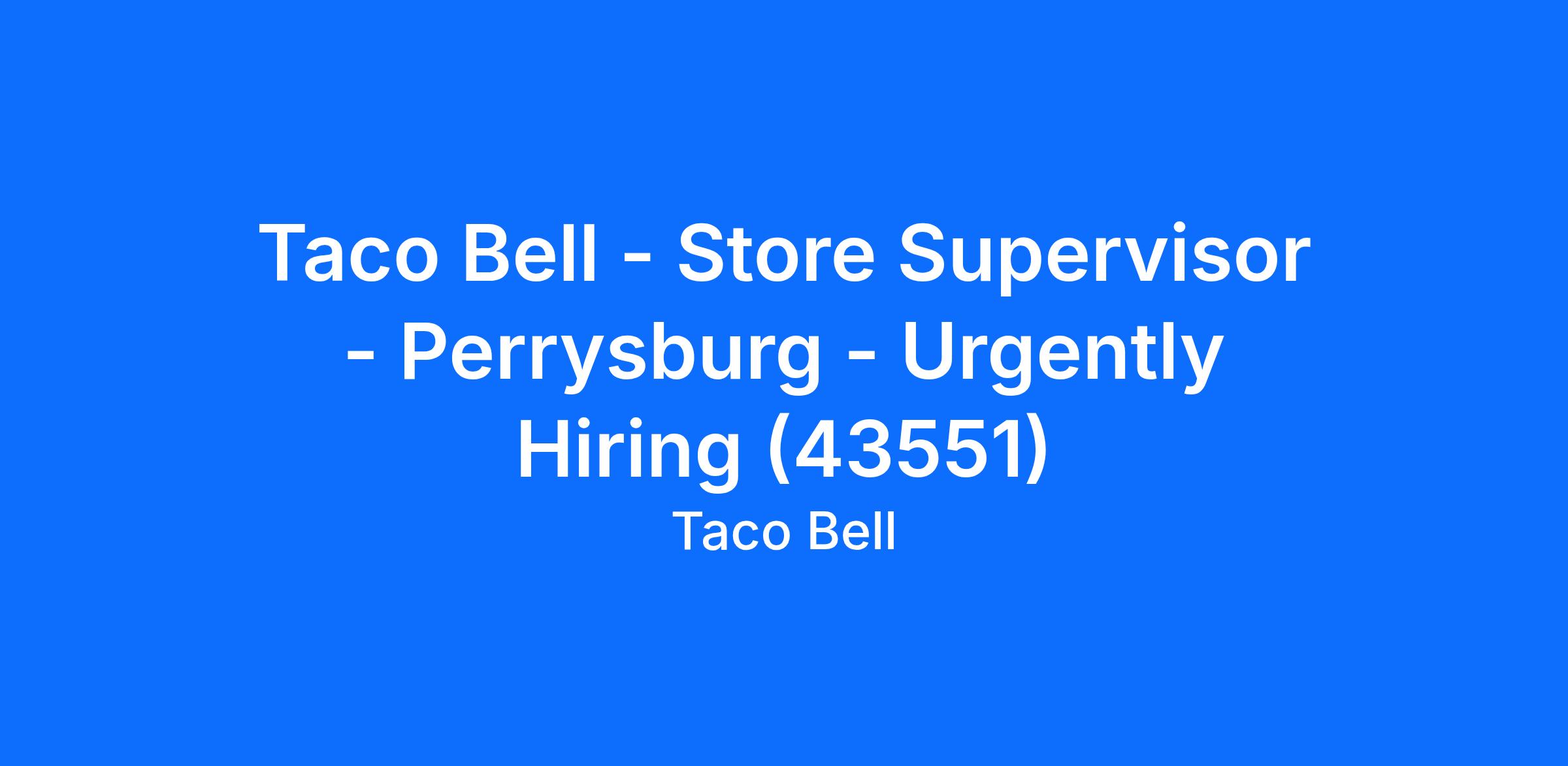 Taco Bell - Store Supervisor - Perrysburg - Urgently Hiring (43551)