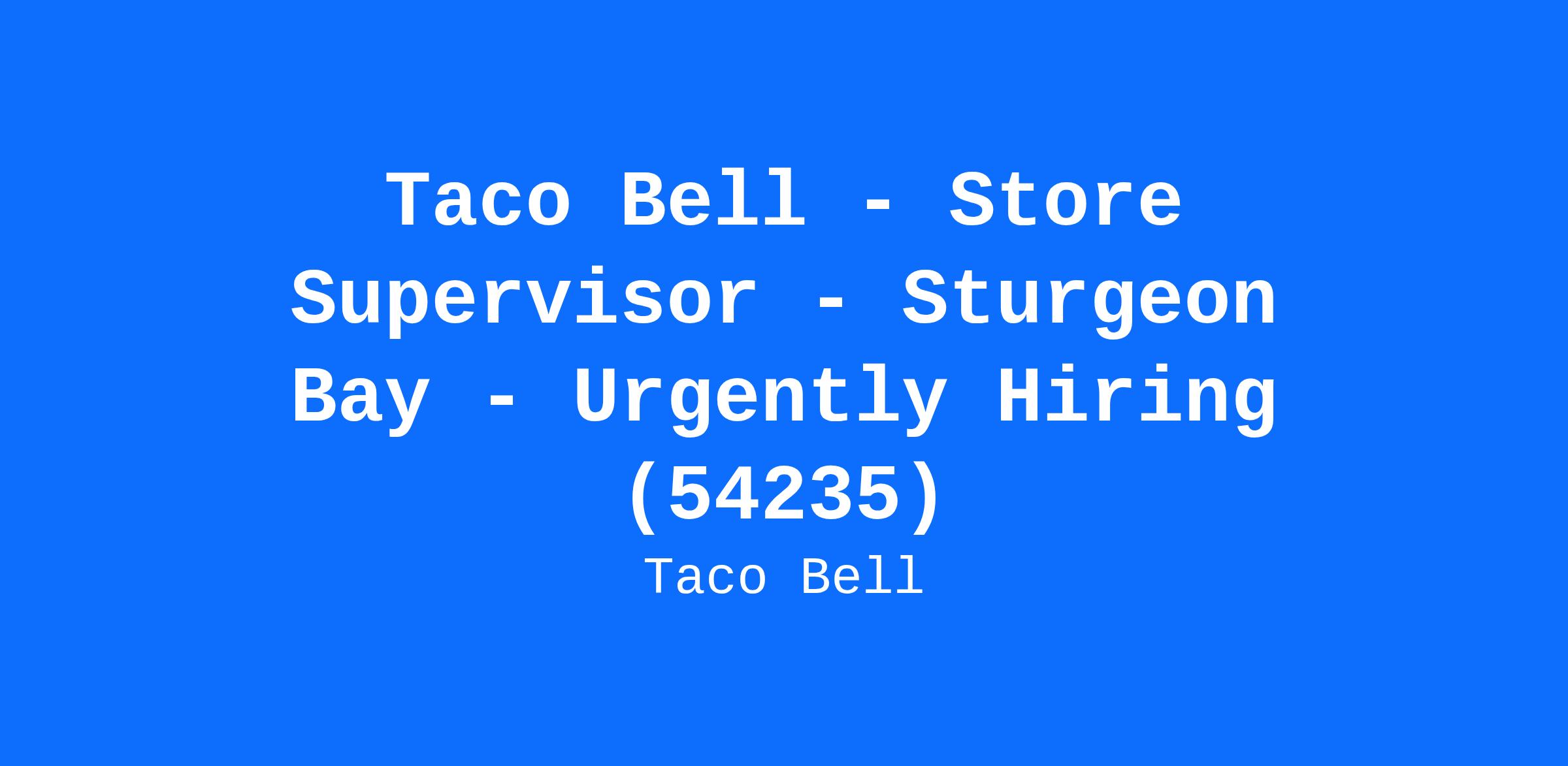 Taco Bell - Store Supervisor - Sturgeon Bay - Urgently Hiring (54235)