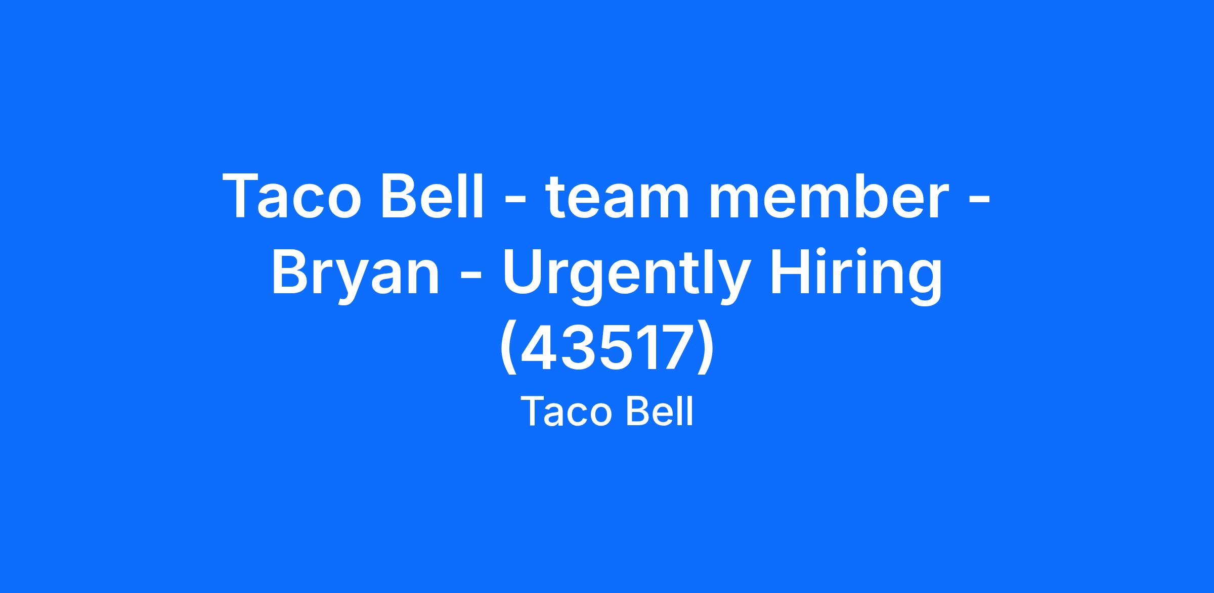 Taco Bell - team member - Bryan - Urgently Hiring (43517)