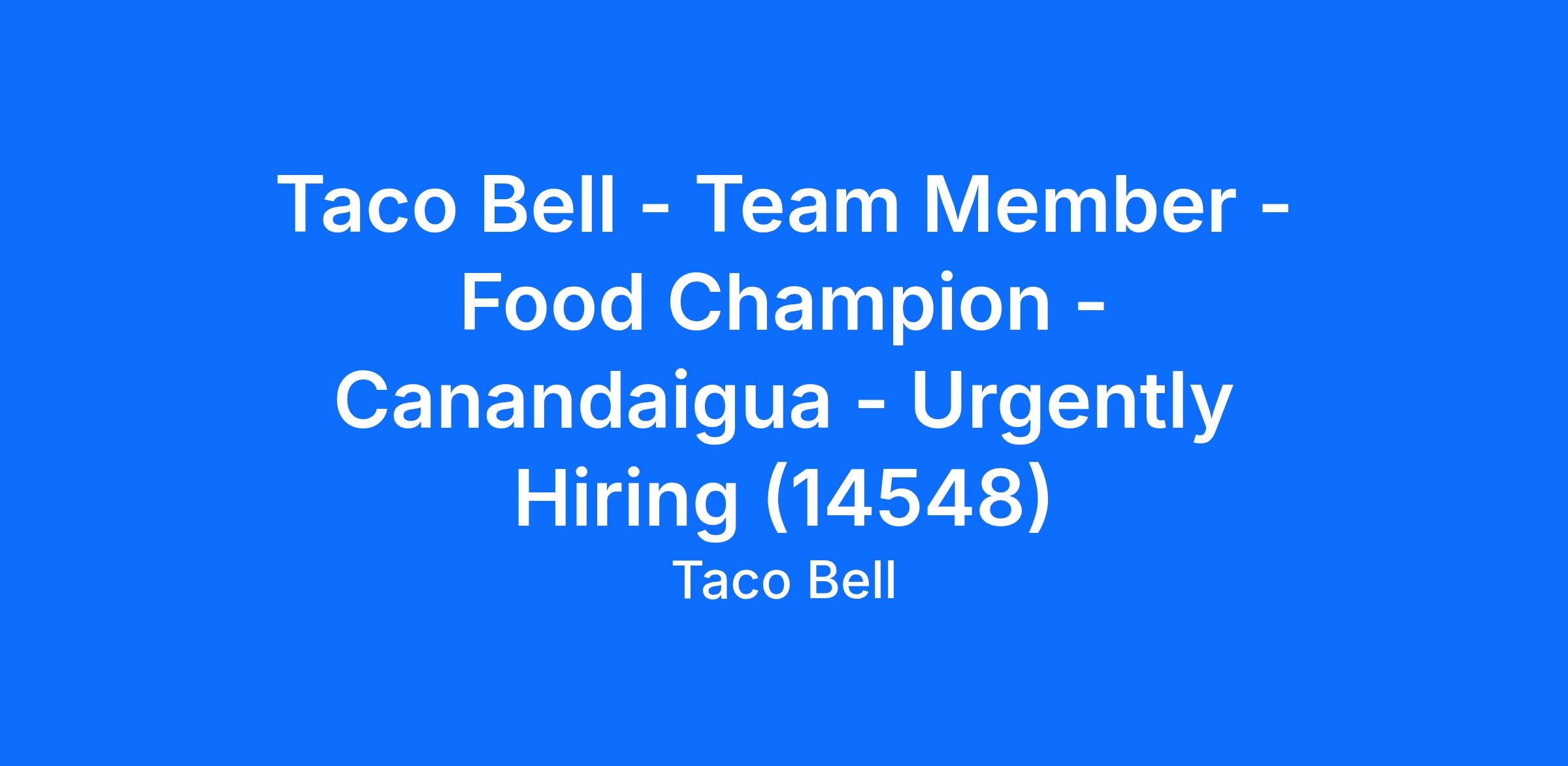 Taco Bell - Team Member - Food Champion - Canandaigua - Urgently Hiring (14548)