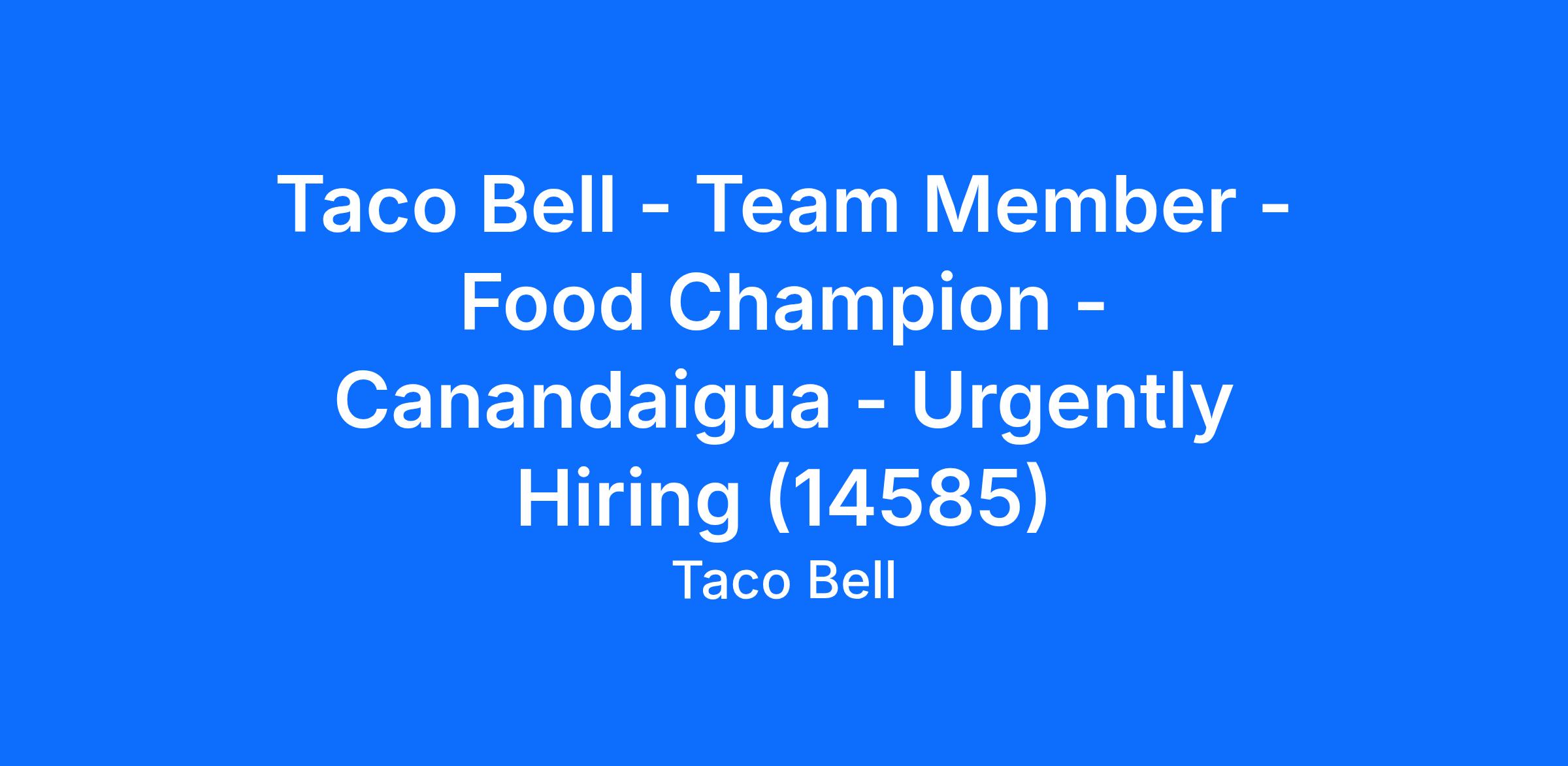 Taco Bell - Team Member - Food Champion - Canandaigua - Urgently Hiring (14585)