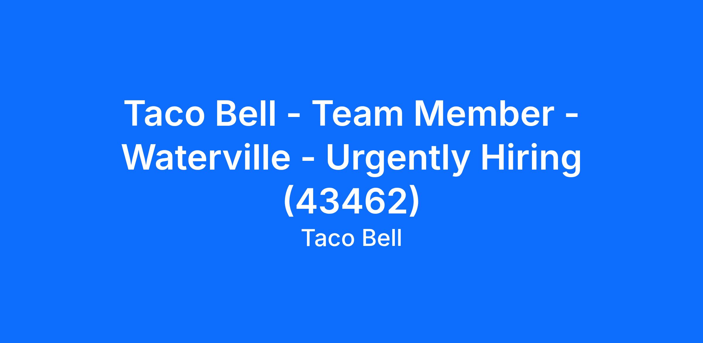 Taco Bell - Team Member - Waterville - Urgently Hiring (43462)