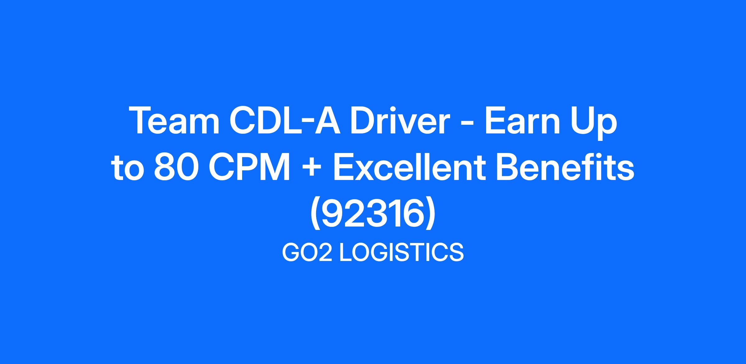 Team CDL-A Driver - Earn Up to 80 CPM + Excellent Benefits (92316)