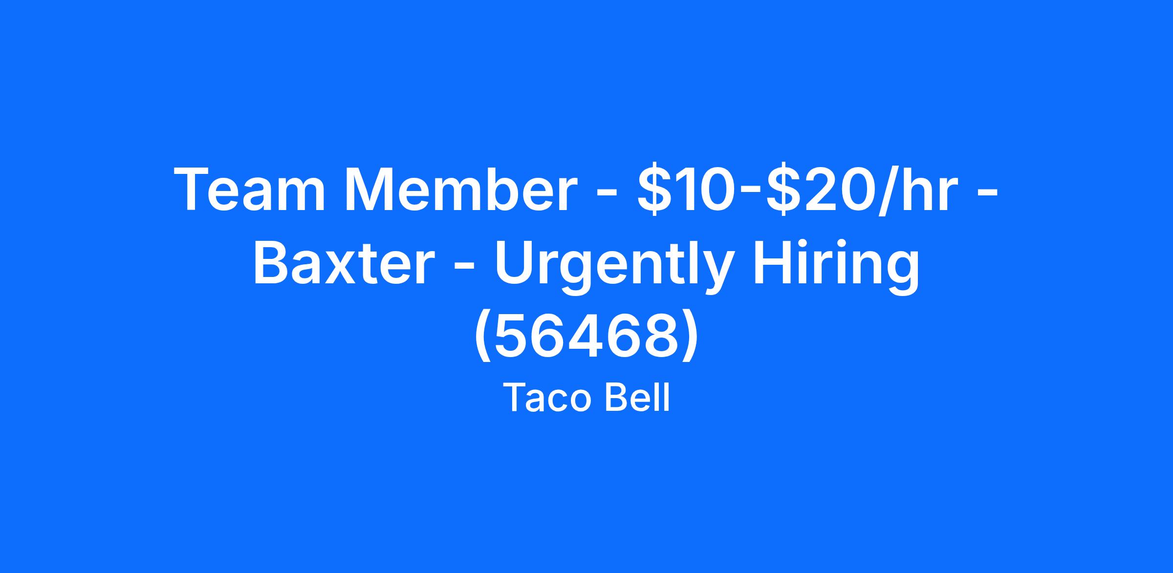 Team Member - $10-$20/hr - Baxter - Urgently Hiring (56468)