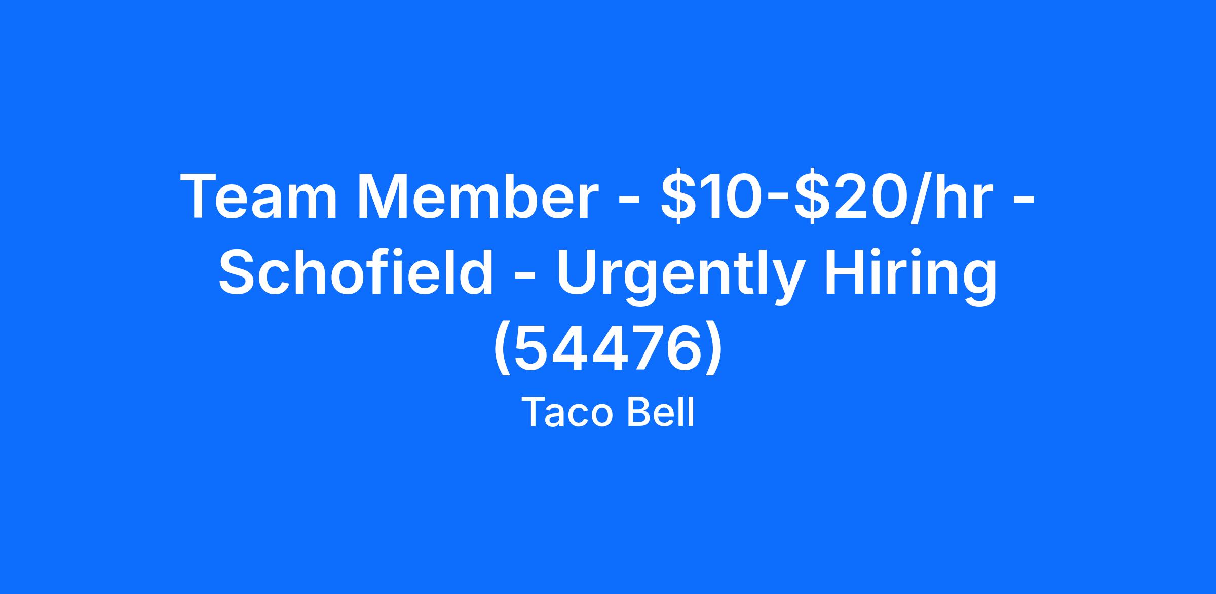 Team Member - $10-$20/hr - Schofield - Urgently Hiring (54476)