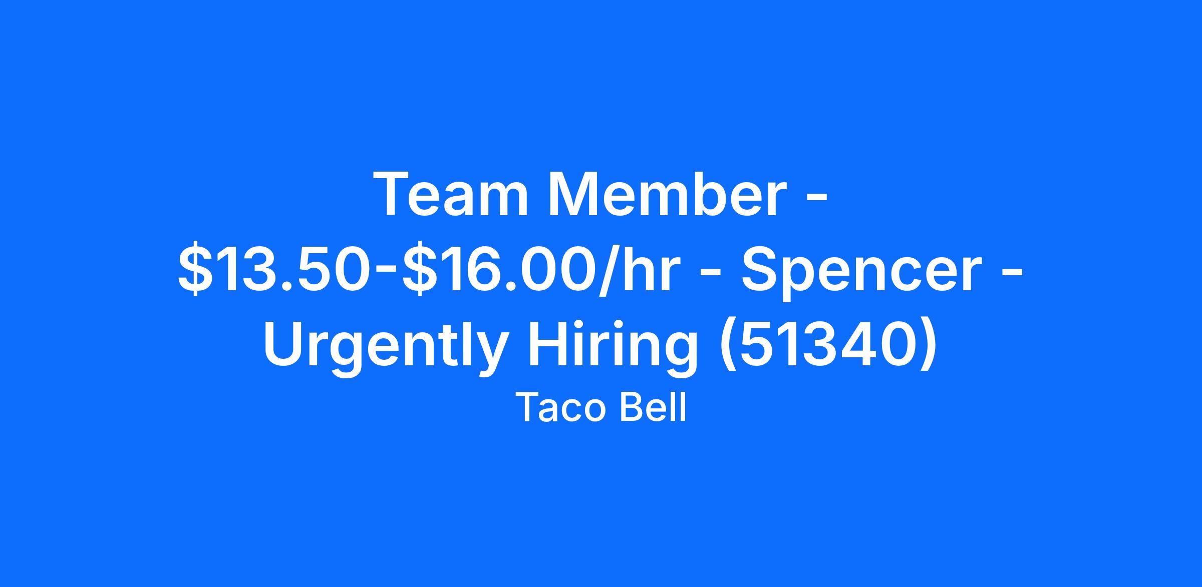 Team Member - $13.50-$16.00/hr - Spencer - Urgently Hiring (51340)