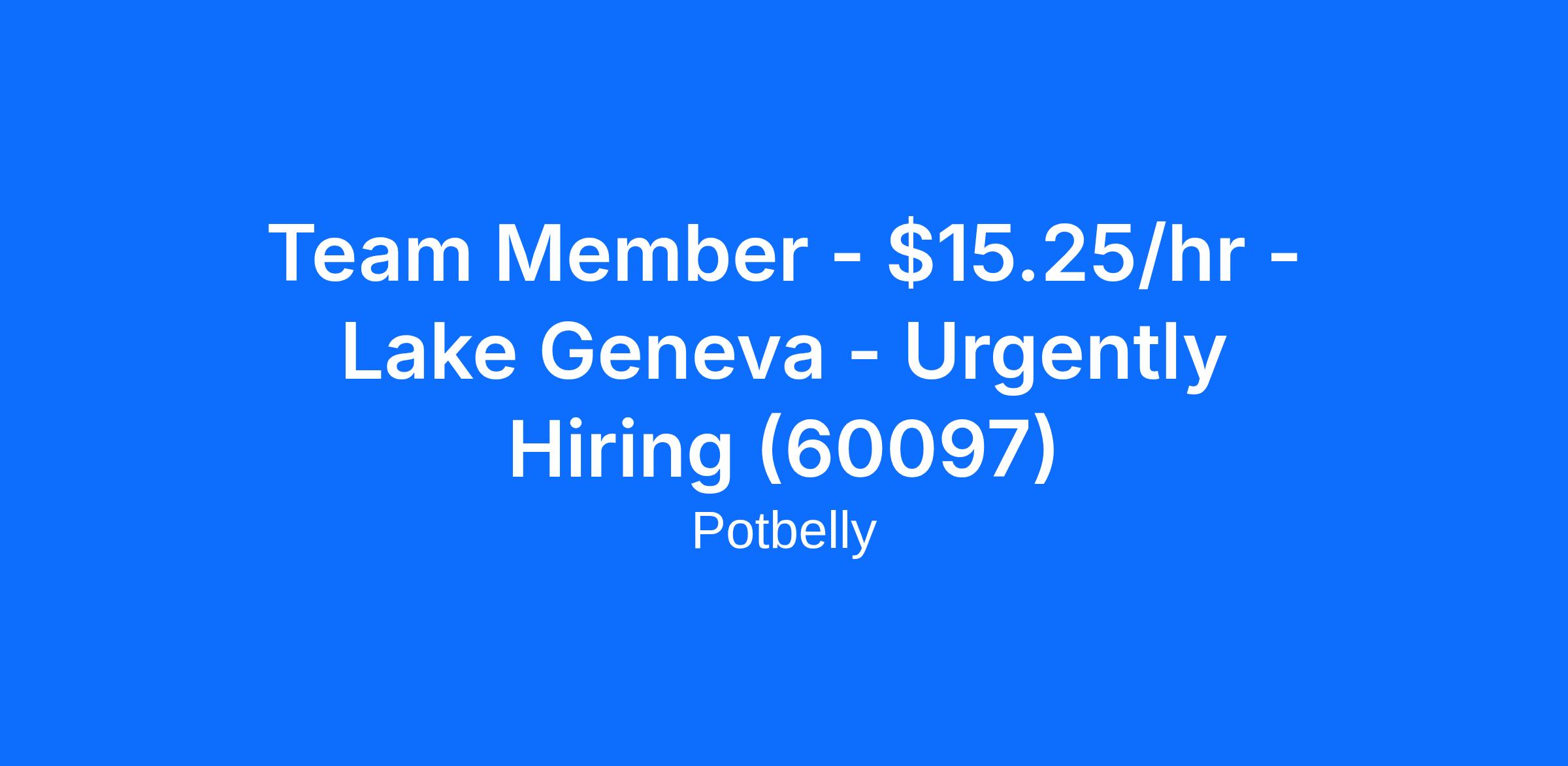 Team Member - $15.25/hr - Lake Geneva - Urgently Hiring (60097)