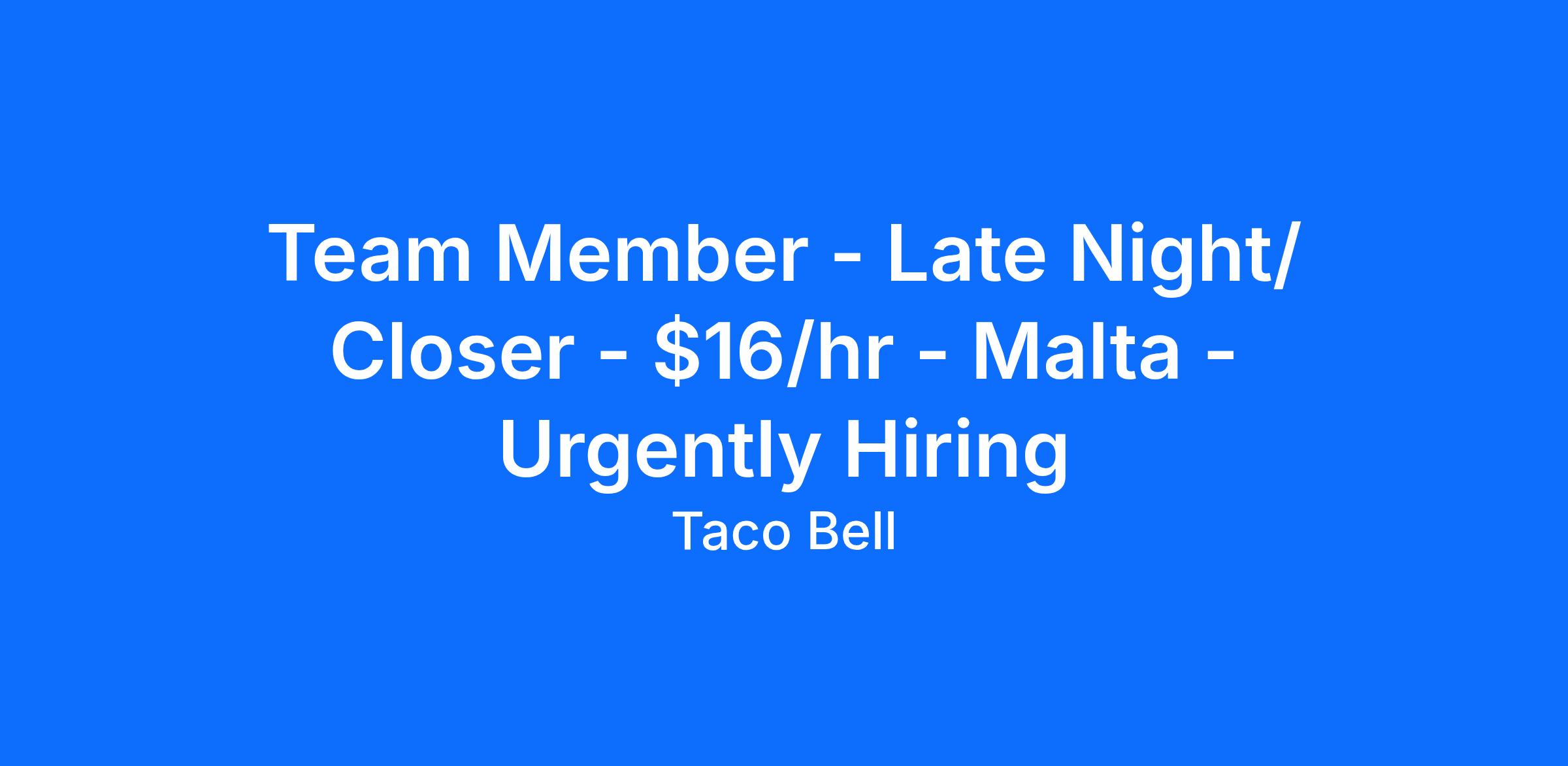 Team Member - Late Night/ Closer - $16/hr - Malta - Urgently Hiring