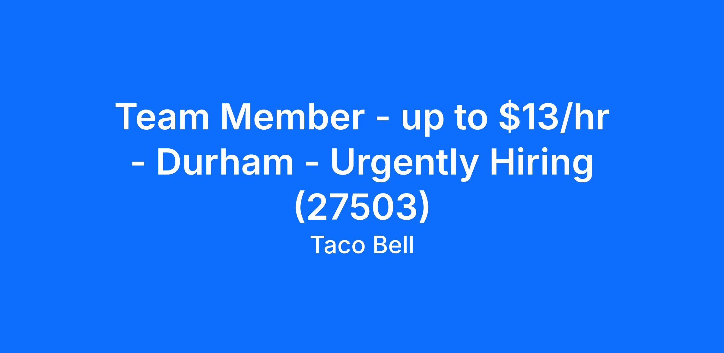 Team Member - up to $13/hr - Durham - Urgently Hiring (27503)