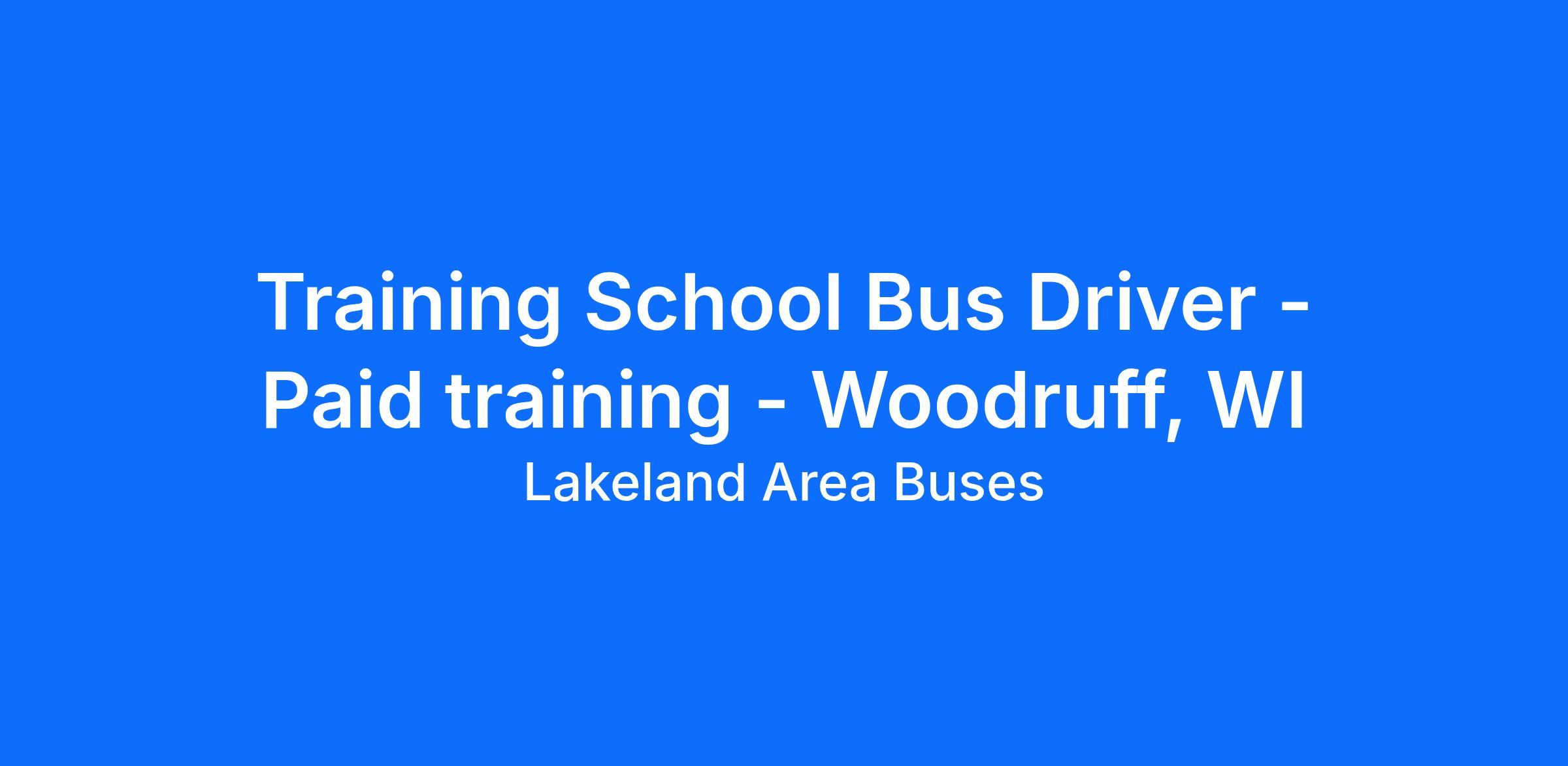 Training School Bus Driver - Paid training - Woodruff, WI