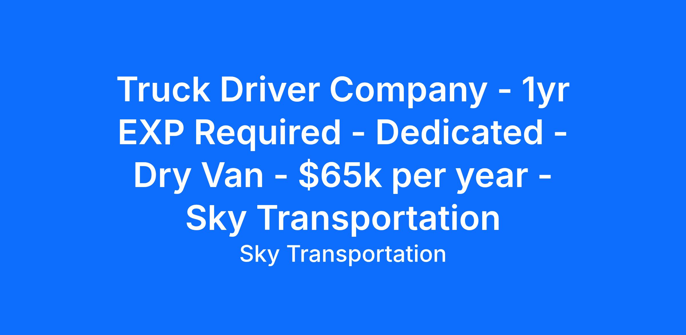 Sky Transportation Services is a driver focused culture that is seeking experienced drivers for our company fleet. If you're interested in a rewarding career with one of the industry's fastest growing and highest recommender transportation companies, apply for over-the-road truck driving opportunities with us today!