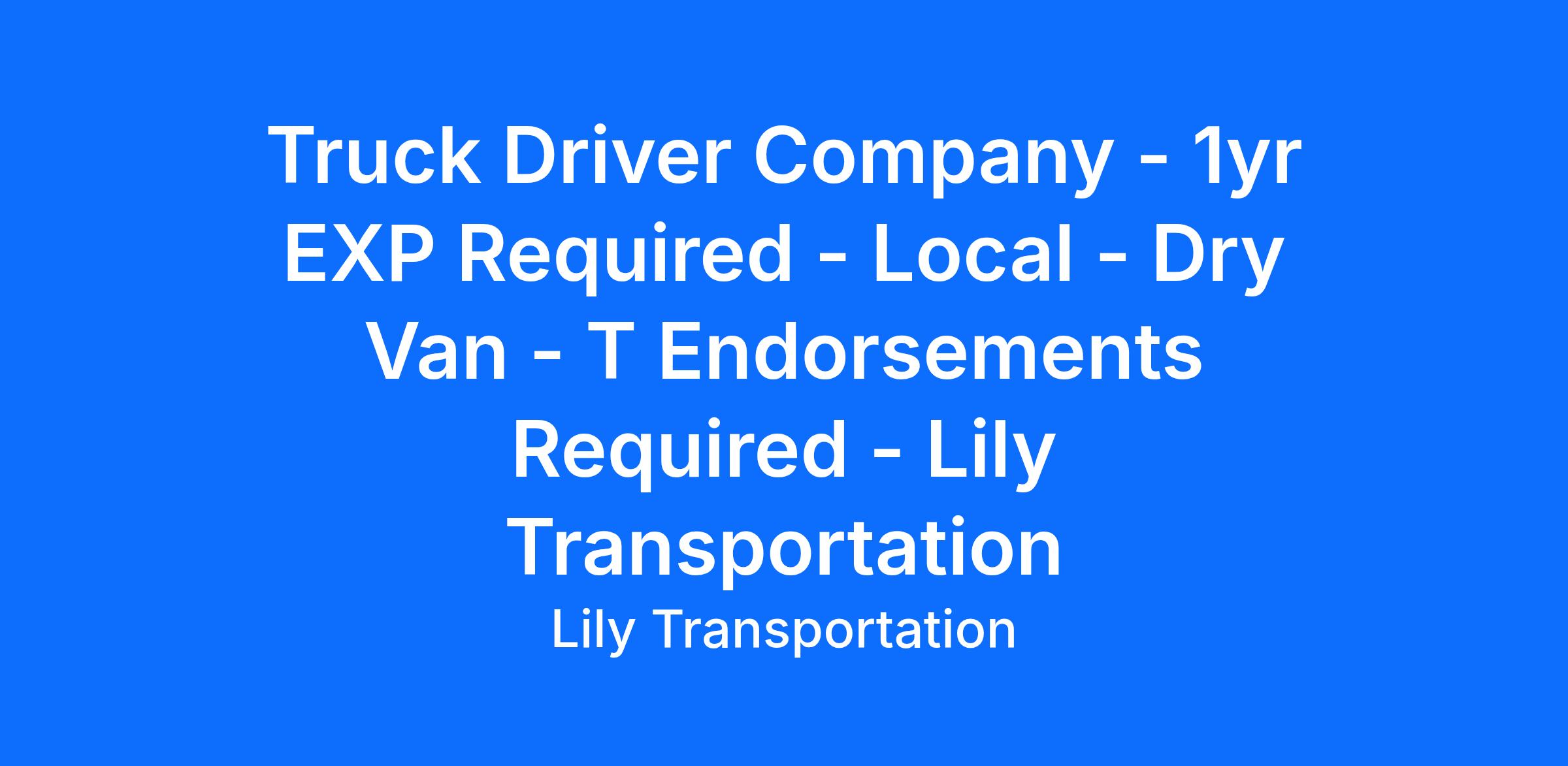 Lily Transportation LLC. Has been in business since 1958 and believe our people are our greatest asset. If you're looking for a Great Opportunity with a Great Company, join the Lily Team today.