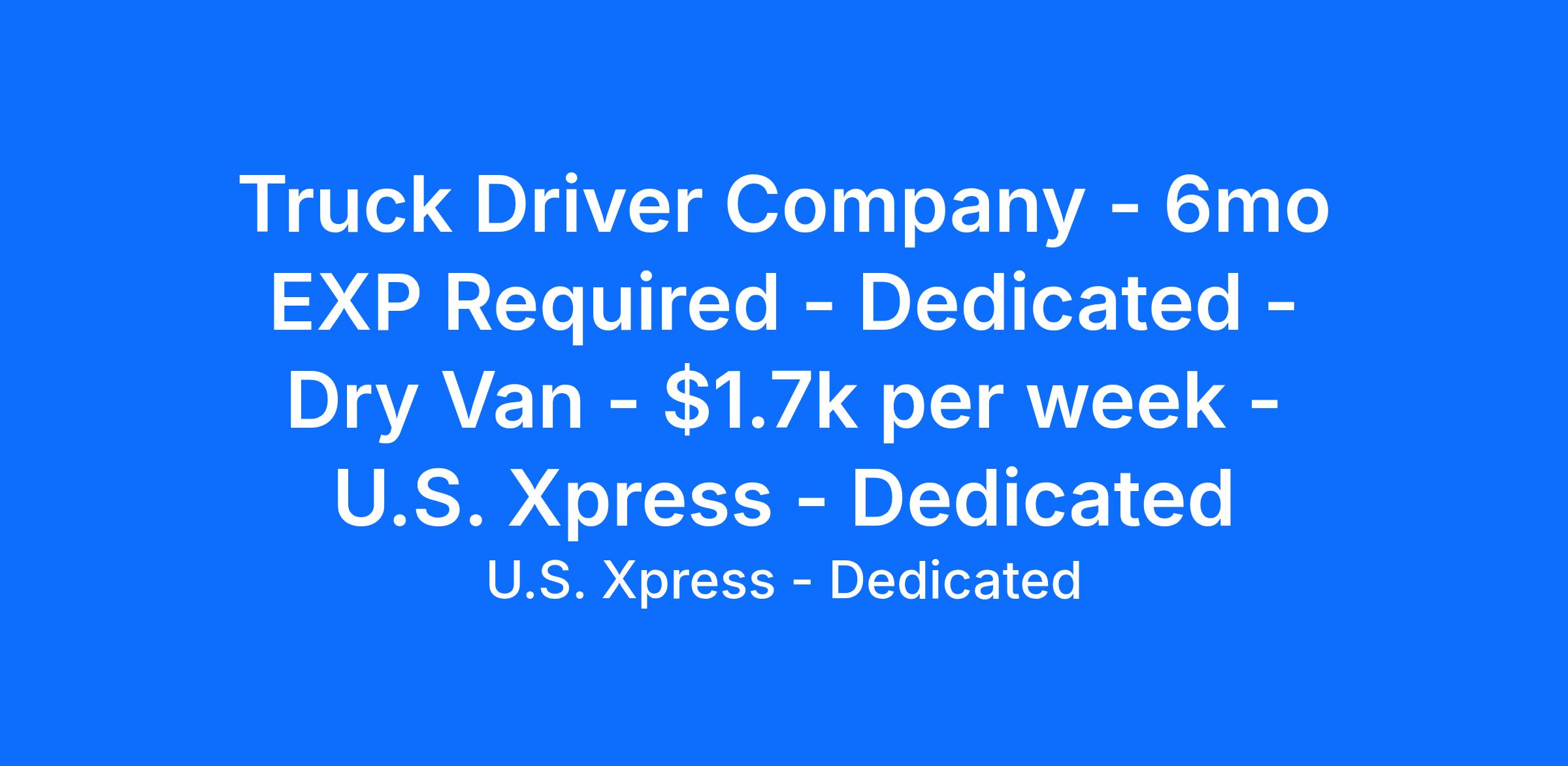 Truck Driver Company - 6mo EXP Required - Dedicated - Dry Van - $1.7k per week - U.S. Xpress - Dedicated