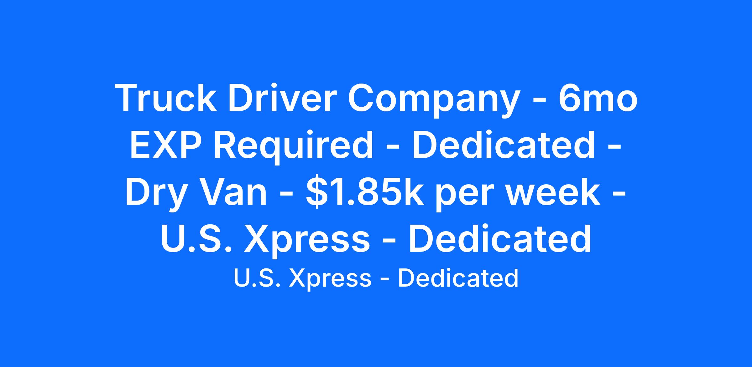 Truck Driver Company - 6mo EXP Required - Dedicated - Dry Van - $1.85k per week - U.S. Xpress - Dedicated