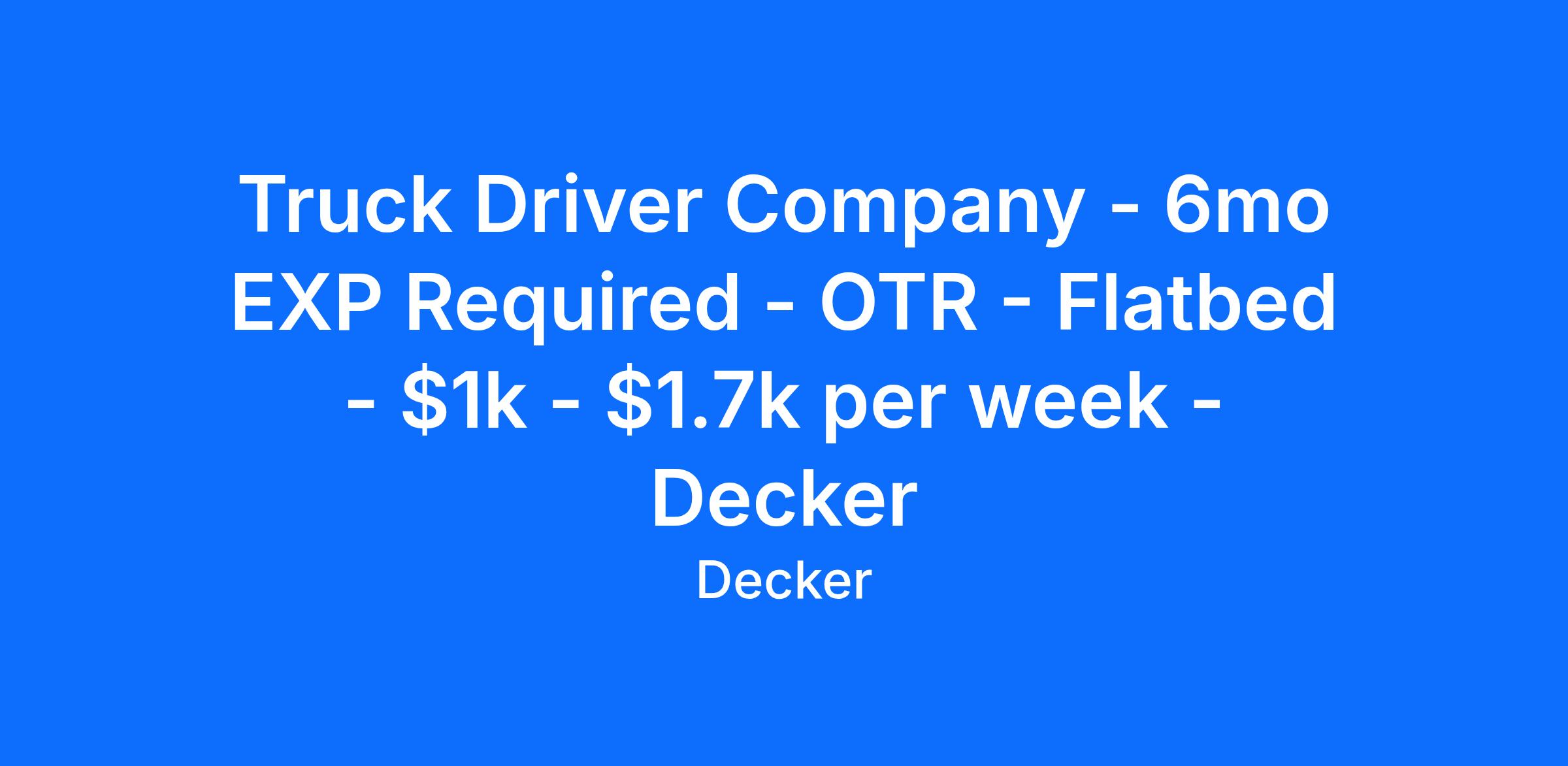 Truck Driver Company - 6mo EXP Required - OTR - Flatbed - $1k - $1.7k per week - Decker