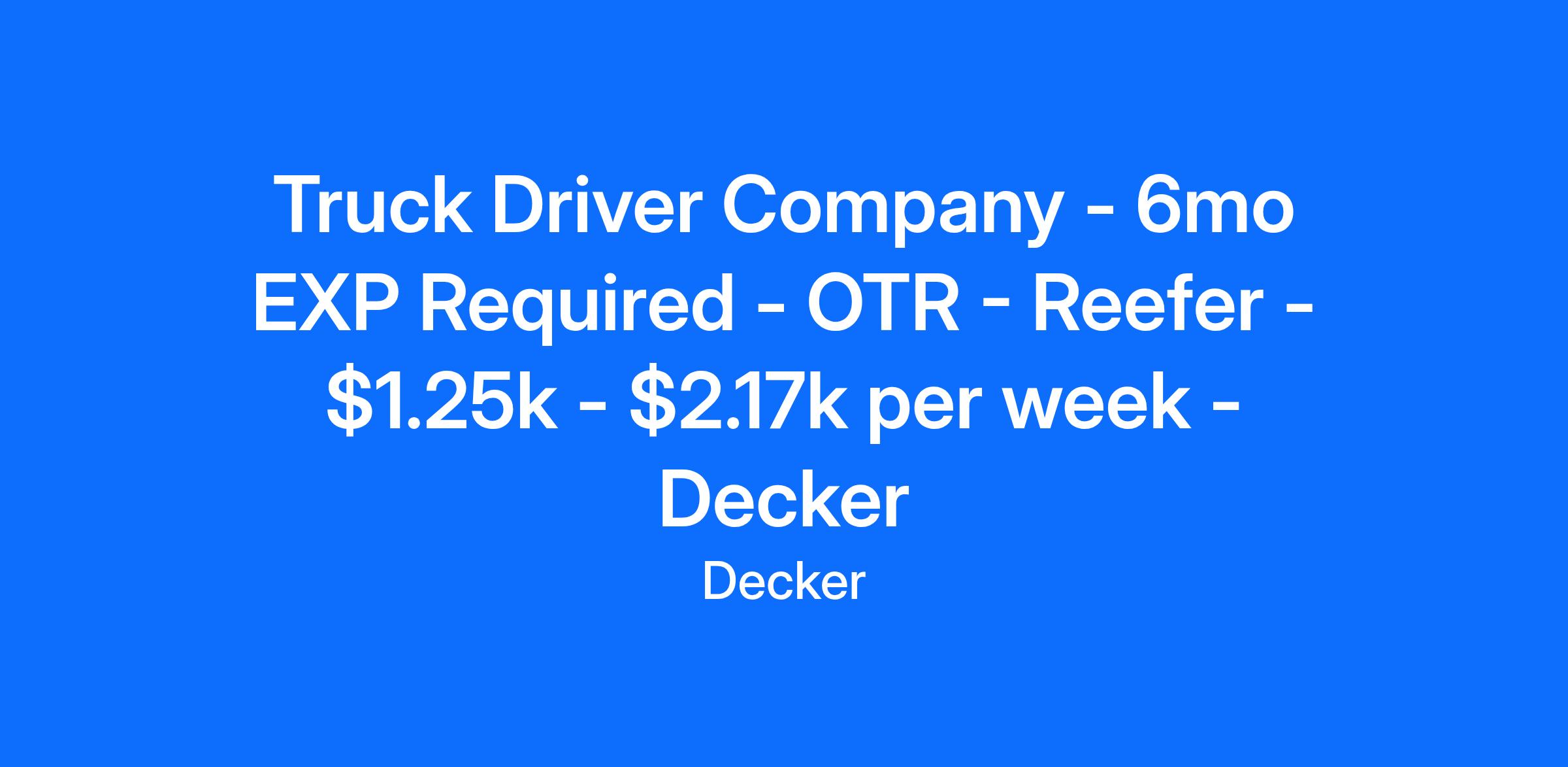 CDL A Company Reefer Driver OTR.