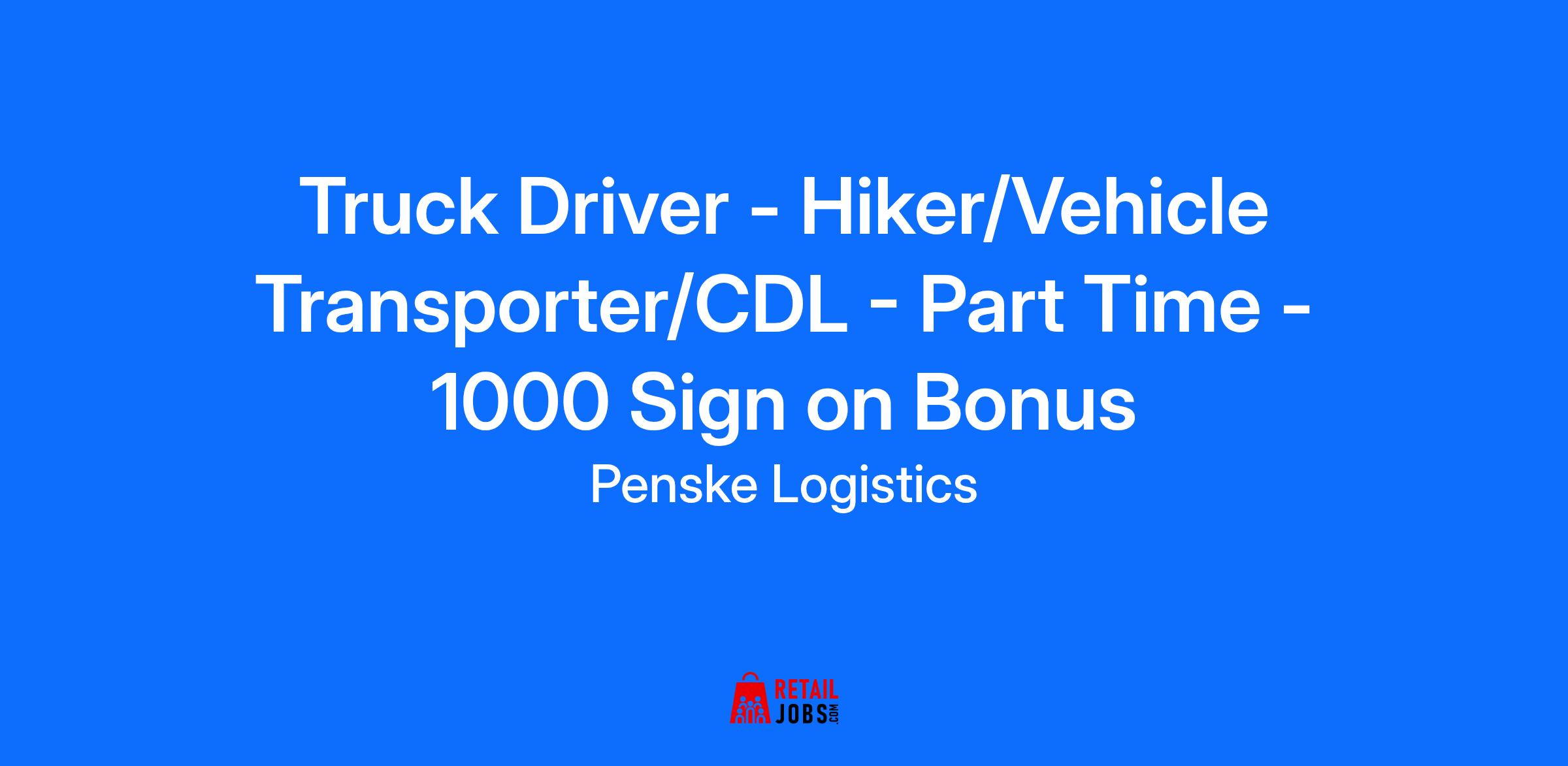 Truck Driver - Hiker/Vehicle Transporter/CDL - Part Time - 1000 Sign on Bonus