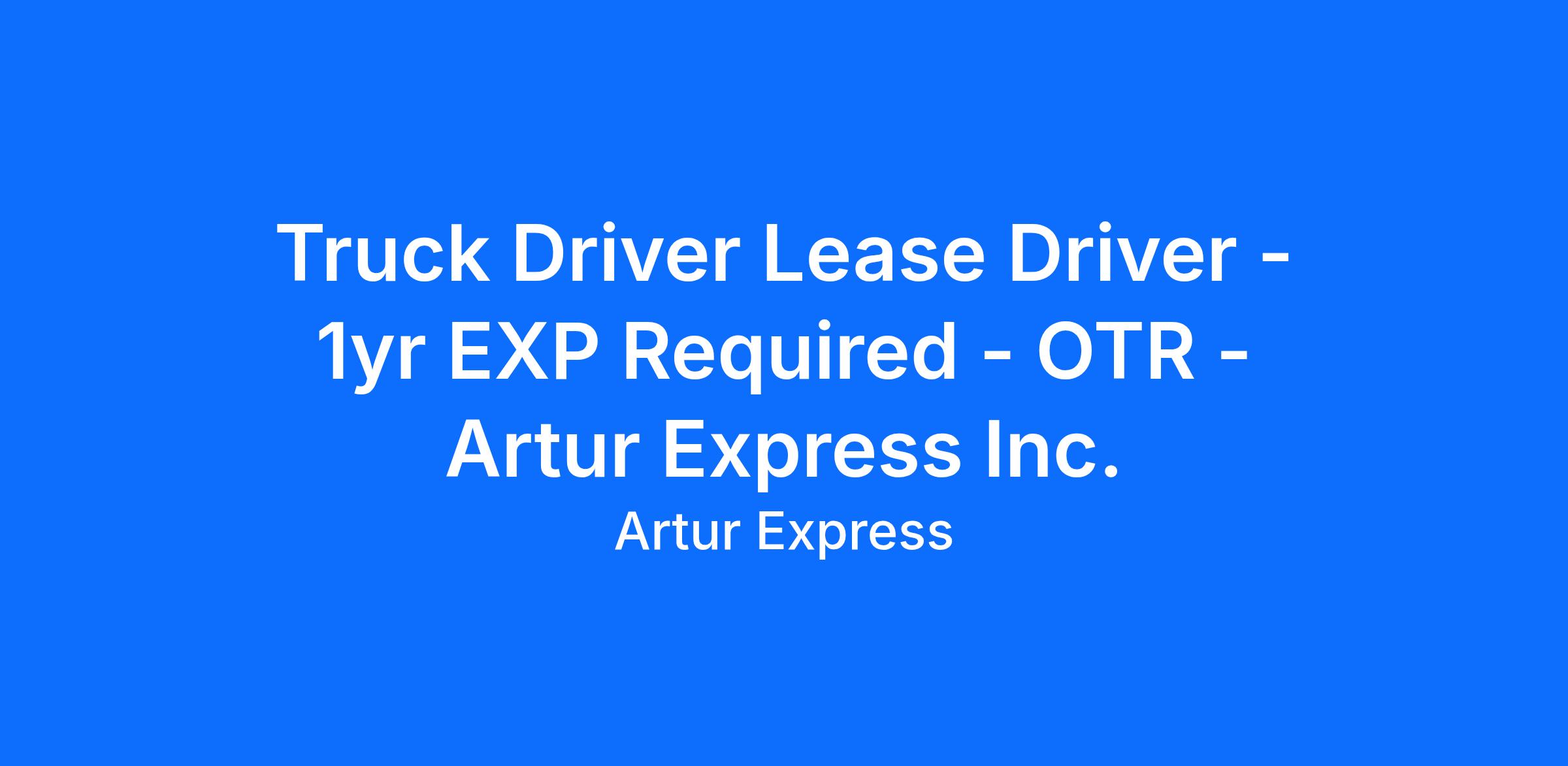 Truck Driver Lease Driver - 1yr EXP Required - OTR - Artur Express Inc.