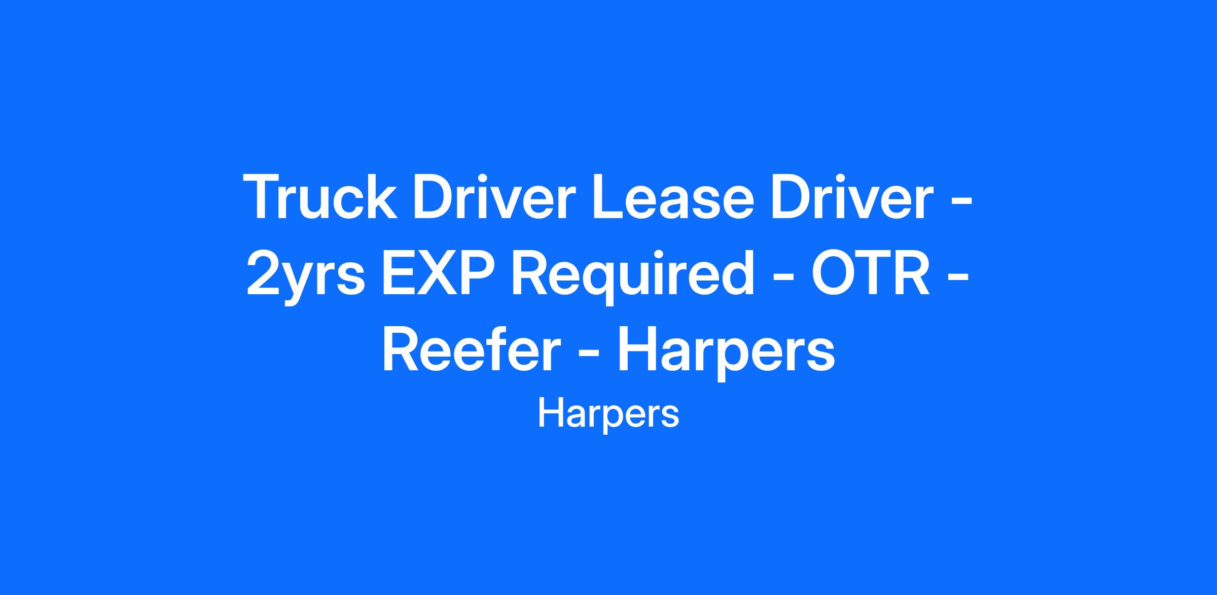 Truck Driver Lease Driver - 2yrs EXP Required - OTR - Reefer - Harpers