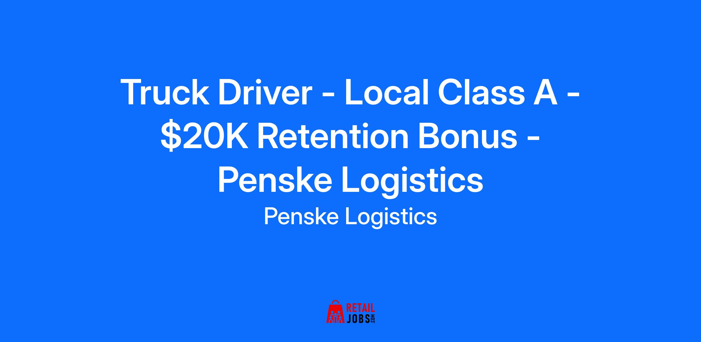 Truck Driver - Local Class A - $20K Retention Bonus - Penske Logistics Immediate Opportunities: Full-time Class A CDL Truck Drivers Average $92,000 annually $20,000 retention bonus Additional $3,000 annual safety bonus 4-day work week available Local, Home Daily You will drive: Late model, Penske Truck Leasing trucks Best-in-class specs designed for comfort and safety Equipped with inward and outward-facing in-cab cameras, helping to ensure safety for all What you will do: Deliver palletized groceries to local stores Pallet breakdown not required Schedule: Multiple schedules available 11 pm start time Comprehensive benefits package includes: Paid vacation and holidays day 1 Generous retirement benefits Excellent health care coverage-medical, dental, and vision Short and long-term disability; life and AD&D insurance Company-provided uniforms and safety footwear Employee discount benefit program Driver referral bonus program up to $5000 per referral Safety incentive program Premier Driver Recognition Program Why Penske? Ready to put your truck-driving career in high gear? Make the shift and fuel your career as a CDL Class A Truck Driver for Penske. When you join Penske, you join a team of professional truck drivers committed to delivering products safely and on time. And we re proud to haul freight for some of the world s leading brands. (Yes, we re more than just the yellow trucks.) But it s more than that. It s about incredible customer service and building relationships with your accounts. When you drive for Penske, you re representing Penske, but you re also representing your clients. In fact, you ll probably be driving their branded trucks and wearing their uniform. You ll be on the move with Penske and so will your career. We have tons of training opportunities for you. And with locations across the nation, you can also move to a new city. Best of all, you ll be with a stable, nationwide company that is known for having the best equipment, great management, clear communication and a fantastic safety record. We pay every Friday, and for most of our driving positions, you re home daily. Yes, daily. Are you ready to take it to the next level? Come drive for Penske. Qualifications: CDL Class A required Currently hold, or ability to obtain, a non-excepted interstate DOT medical card required 1 year of documented tractor-trailer experience in the last 3 years required, or 2 years of documented tractor-trailer experience in the last 5 years 3 years DMV/MVR record with two or fewer moving violations or accidents In order to be compliant with federal law (49 C.F.R. 391.11(b)(2 , this role requires English language proficiency Work the required schedule, work at the specific location required, complete Penske employment application, submit to a background investigation (to include past employment, education, and criminal history) and drug screening required. This position is regulated by the Department of Transportation or designated as safety sensitive by the company, and the ability to work in a constant state of alertness and in a safe manner is required. Associates must have the ability to accept responsibility for their own safety, as well as the safety of others. Physical Requirements: The physical and mental demands described here are representative of those that must be met by an associate to successfully perform the essential functions of this job. Reasonable accommodations may be made to enable individuals with disabilities to perform the essential functions. The associate must be able to see and hear. Specific vision abilities required by this job include close vision, distance vision, peripheral vision, depth perception and the ability to adjust focus. While performing the duties of this job, the associate will be required to move frequently, stand, walk, and sit. The associate is frequently required to use hands to touch, handle, and feel, and to reach with hands and arms. The associate must be able to lift and/or move up to 50lbs/23kg and may occasionally lift and/or move up to 100lbs/45kg. The associate must be able to legally operate a motor vehicle and safely and frequently enter/exit the vehicle as well as the rear cargo area. Penske is an Equal Opportunity Employer. About Penske Logistics Penske Logistics engineers state-of-the-art transportation, warehousing and freight management solutions that deliver powerful business results for market-leading companies. With operations in North America, South America, Europe and Asia, Penske and its associates help businesses move forward by increasing visibility and driving down supply-chain costs.