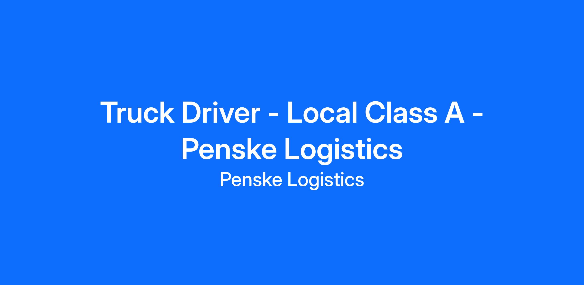 Truck Driver - Local Class A - Penske Logistics
