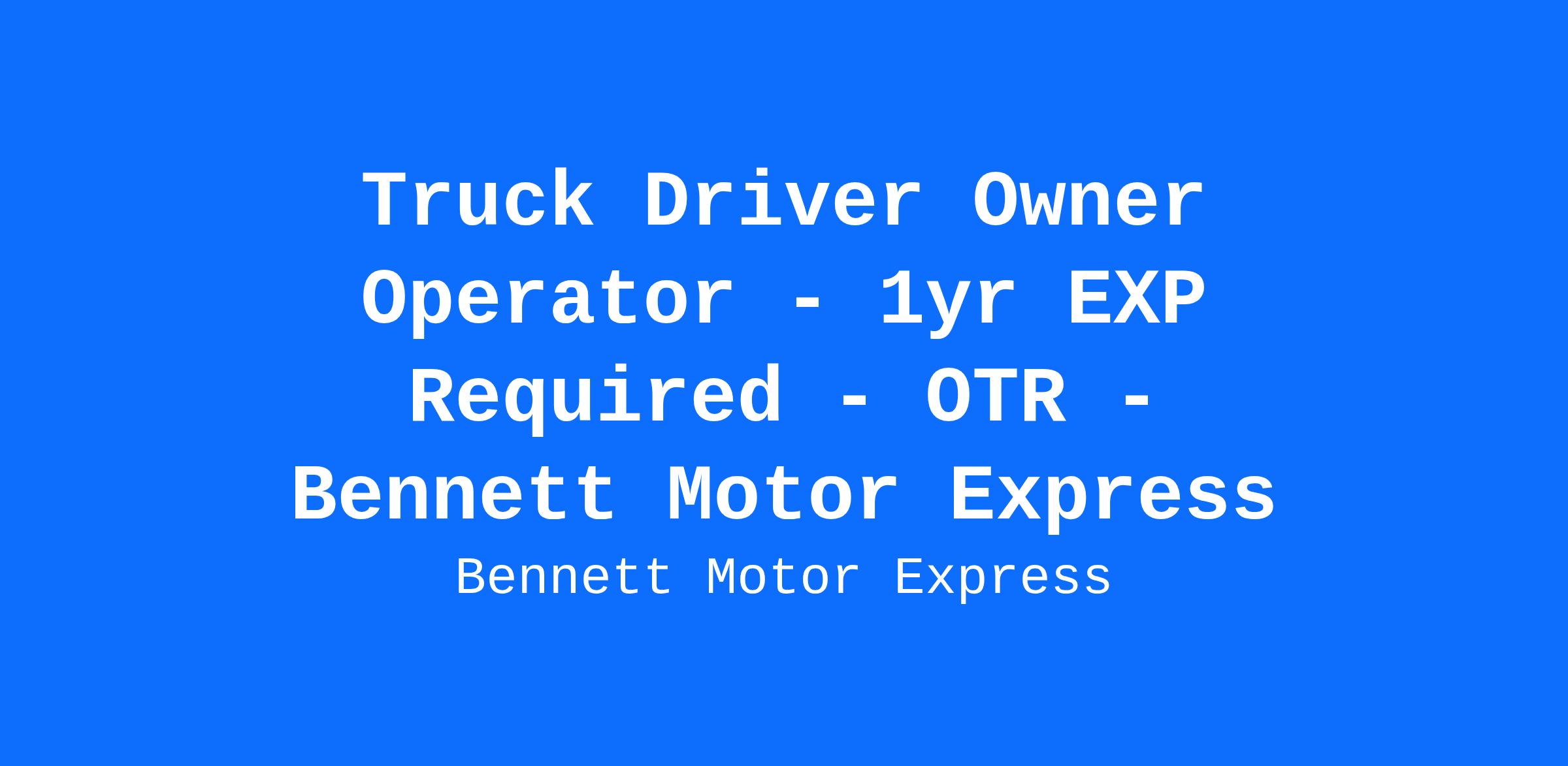 Truck Driver Owner Operator - 1yr EXP Required - OTR - Bennett Motor Express