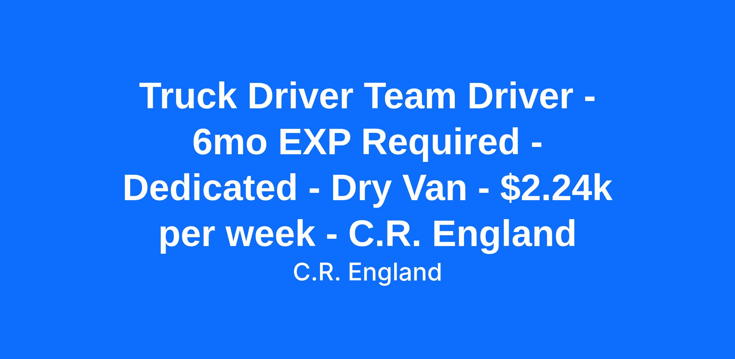 Truck Driver Team Driver - 6mo EXP Required - Dedicated - Dry Van - $2.24k per week - C.R. England