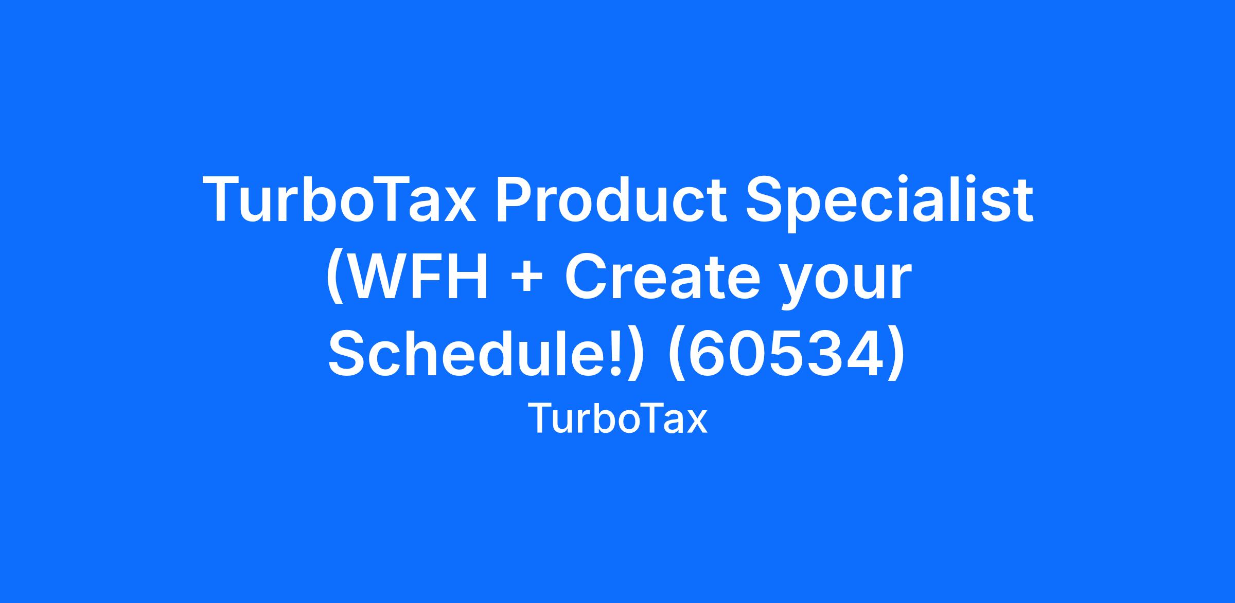 TurboTax Product Specialist (WFH + Create your Schedule!) (60534)