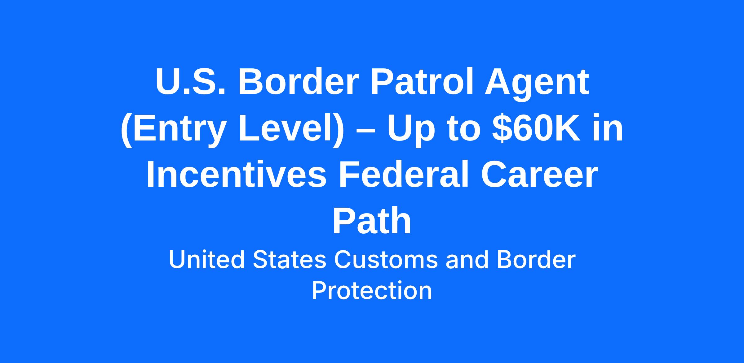 U.S. Border Patrol Agent (Entry Level) – Up to $60K in Incentives Federal Career Path