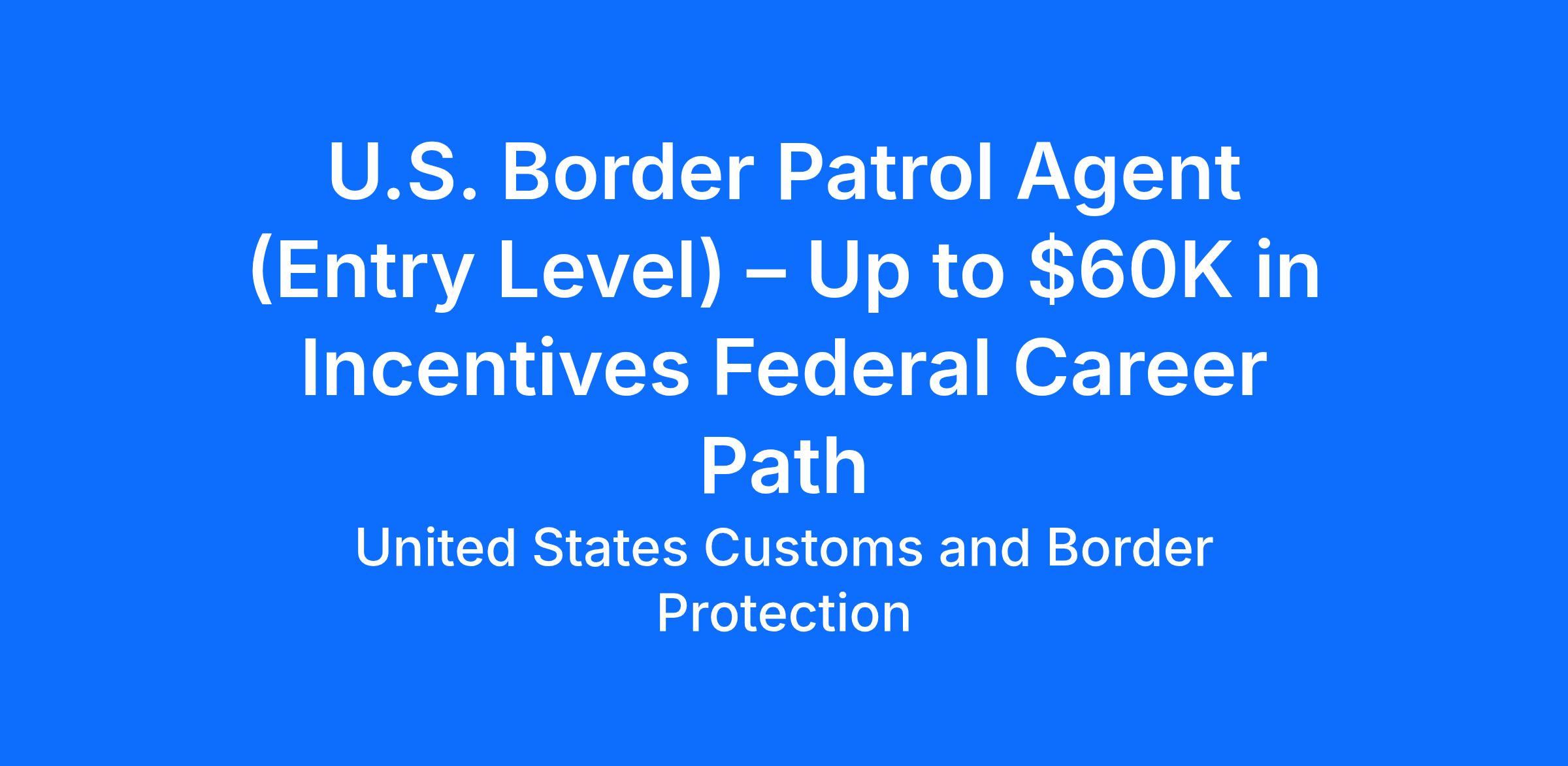 U.S. Border Patrol Agent (Entry Level) – Up to $60K in Incentives Federal Career Path