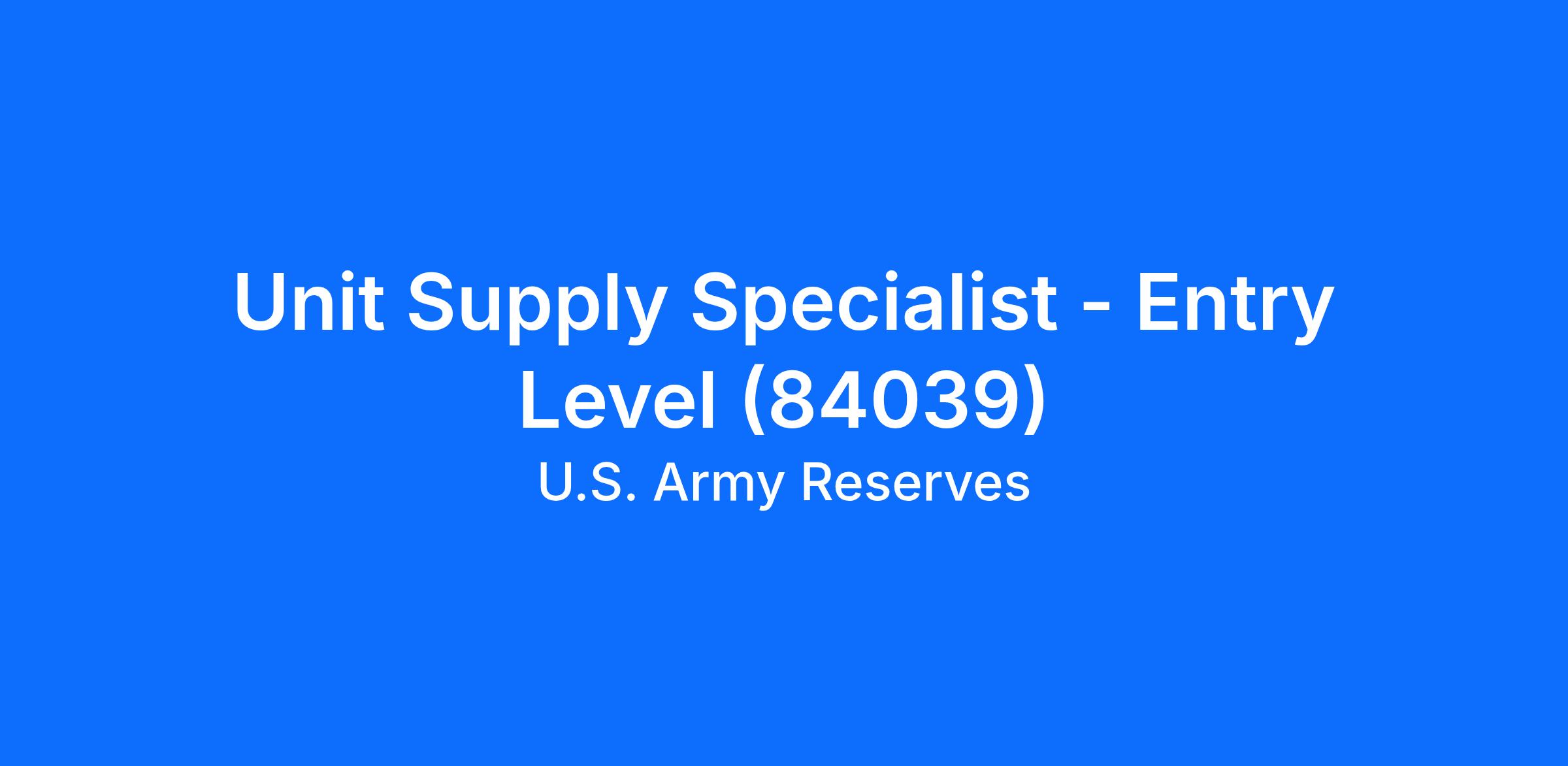 Unit Supply Specialist - Entry Level (84039)