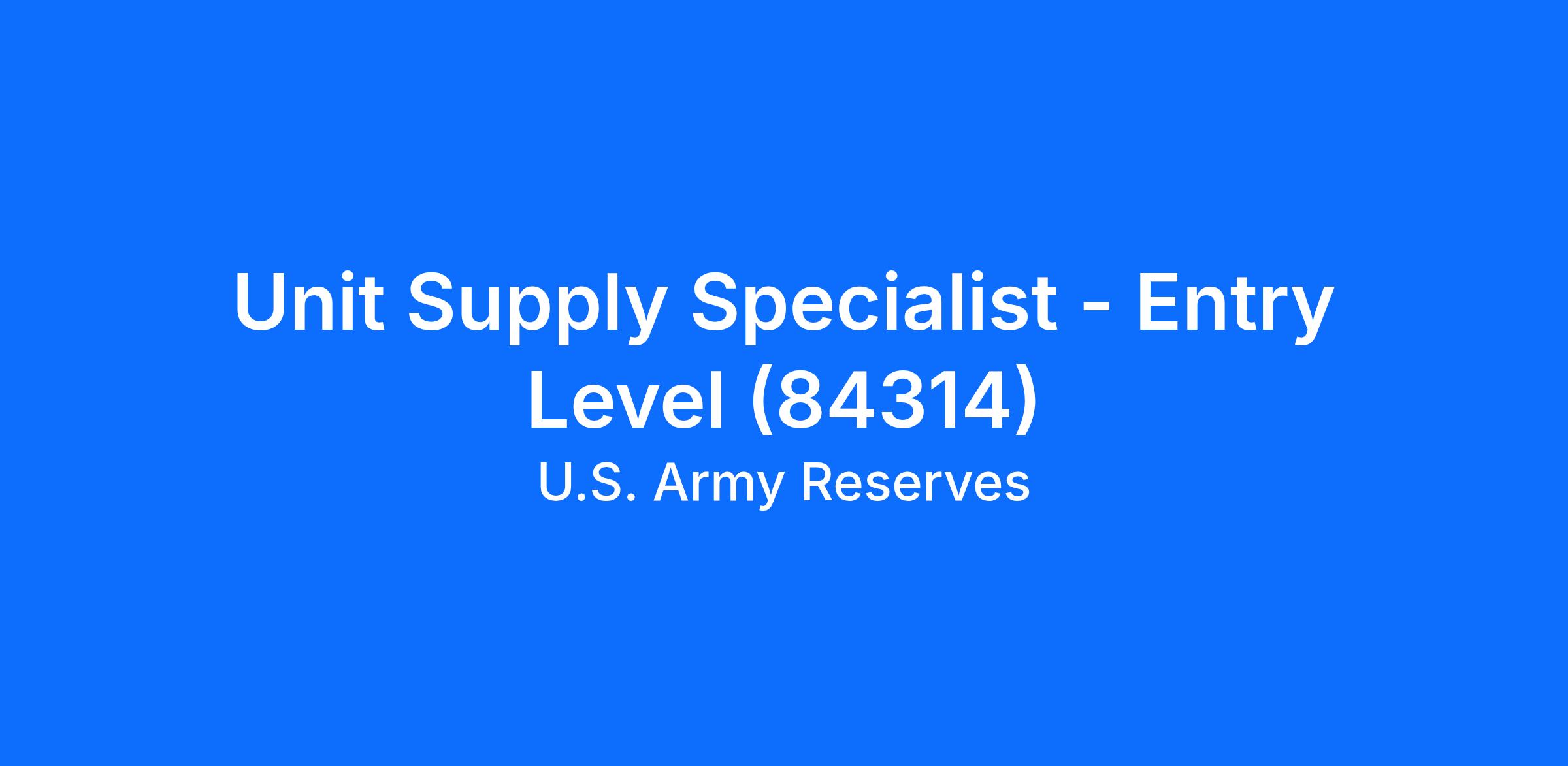 Unit Supply Specialist - Entry Level (84314)