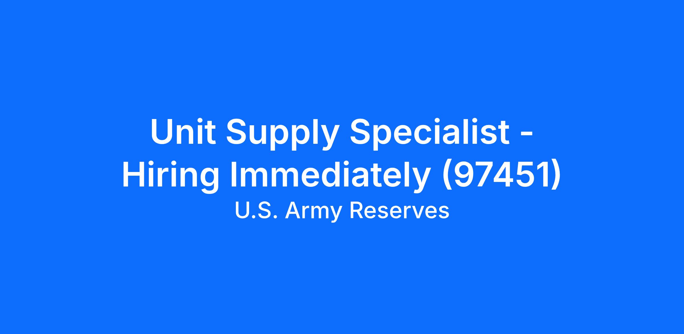 Unit Supply Specialist - Hiring Immediately (97451)